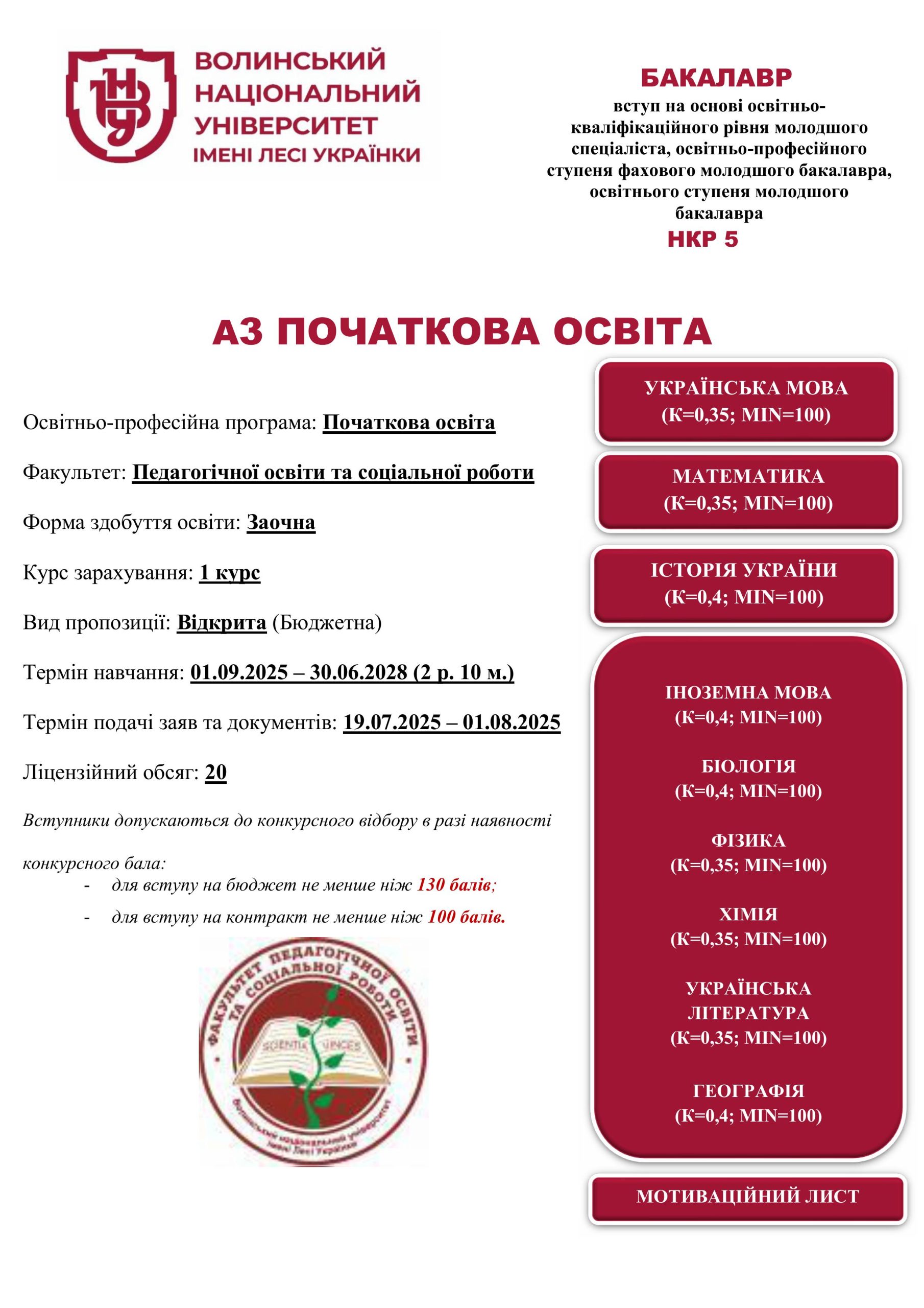 А3 Початкова освіта/Початкова освіта (заочна форма здобуття освіти) НРК5