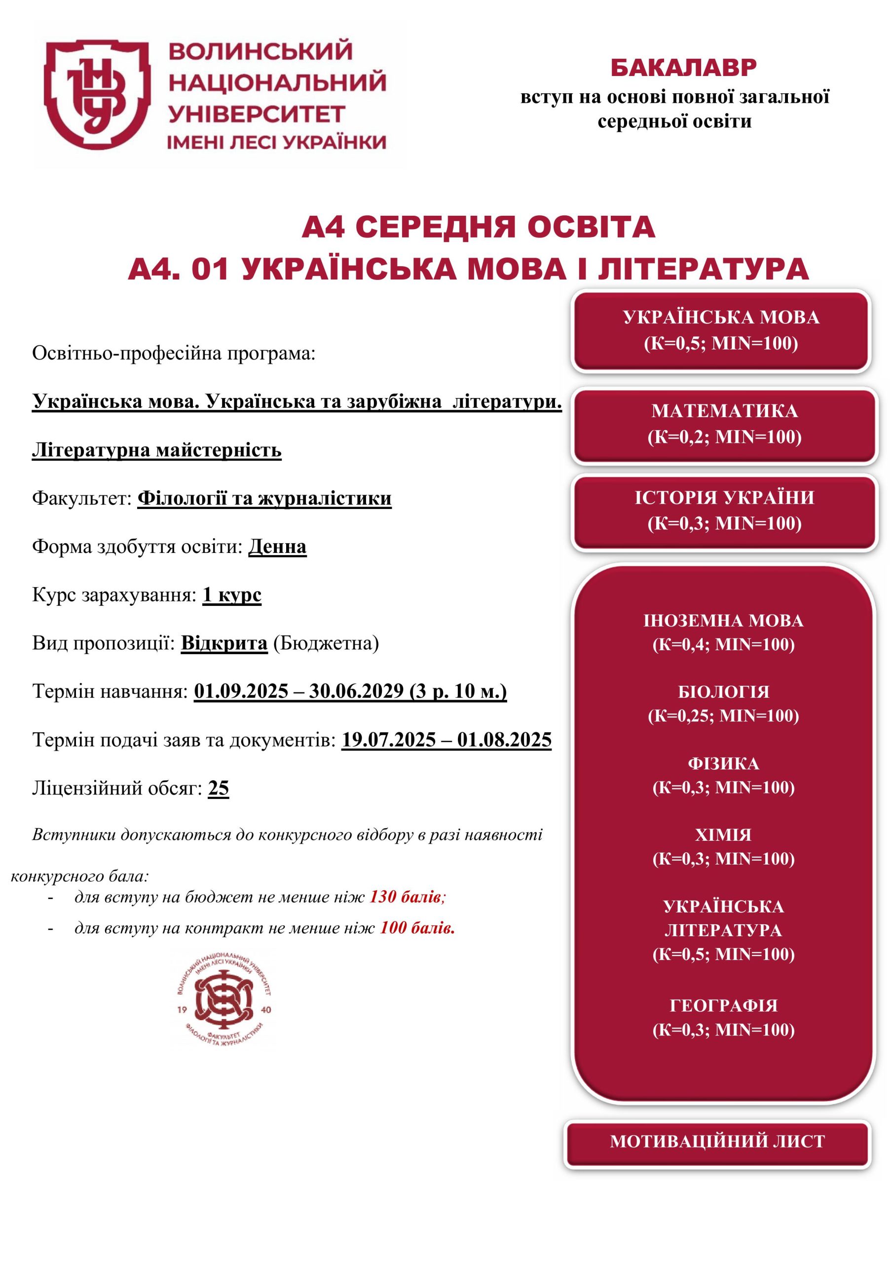 А4 Середня освіта /Українська мова. Українська та зарубіжна літератури. Літературна майстерність