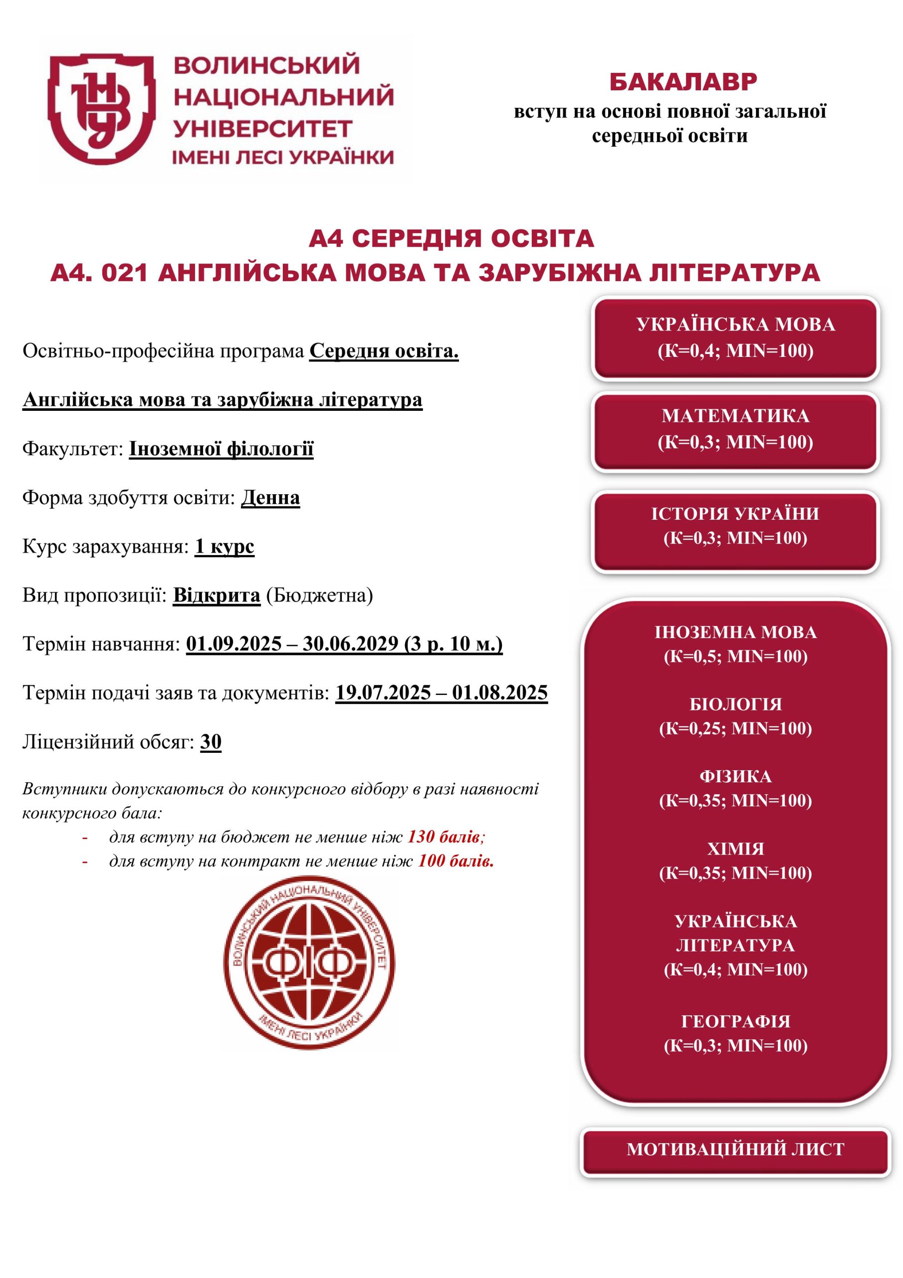 А4. 021 Англійська мова та зарубіжна література/Середня освіта. Англійська мова та зарубіжна література