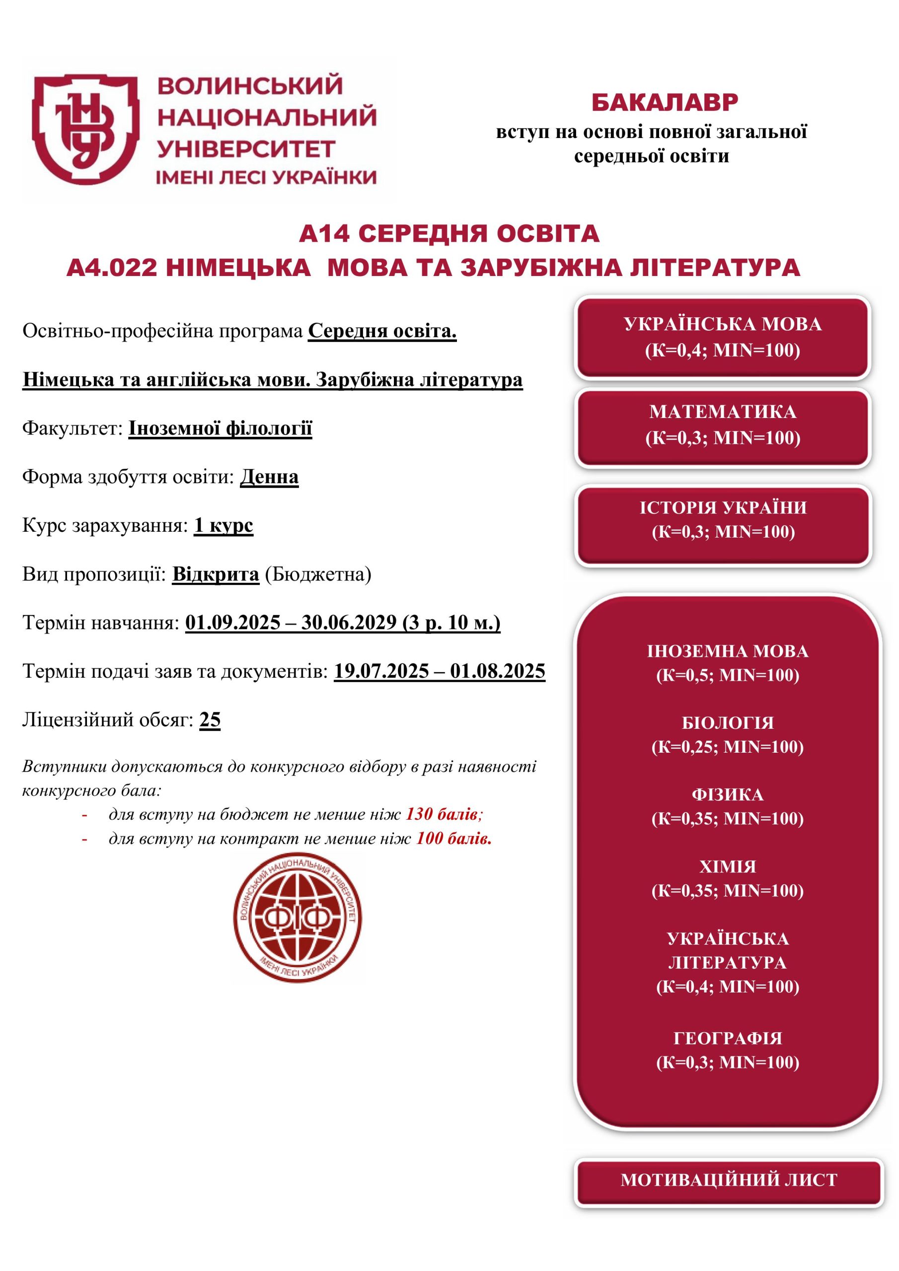 А4.022 Німецька мова та зарубіжна література/Середня освіта. Німецька та англійська мови. Зарубіжна література