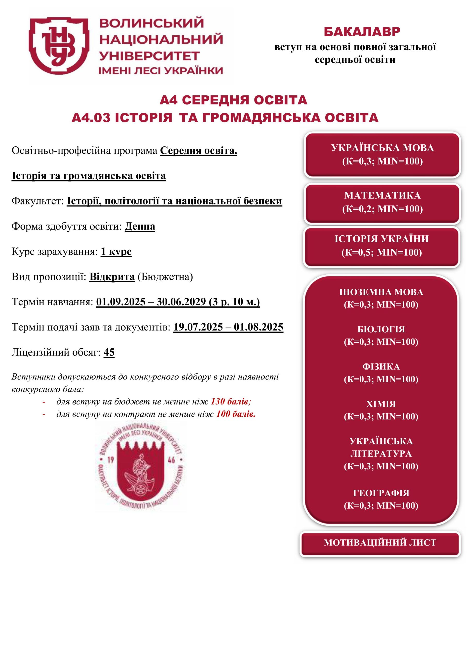 А4.03 Історія та громадянська освіта/ Середня освіта. Історія та громадянська освіта