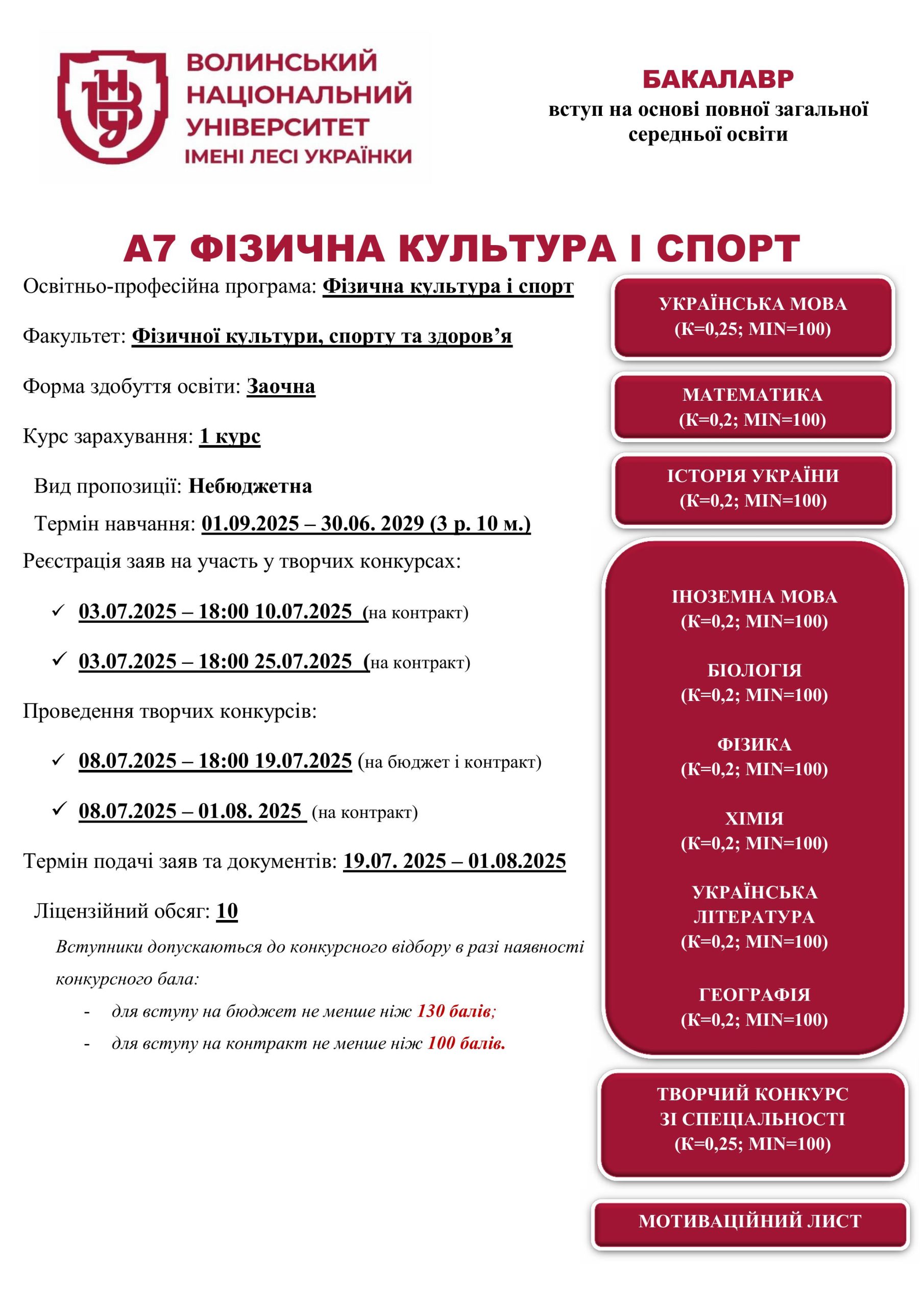А7 Фізична культура і спорт/Фізична культура і спорт (заочна форма здобуття освіти)