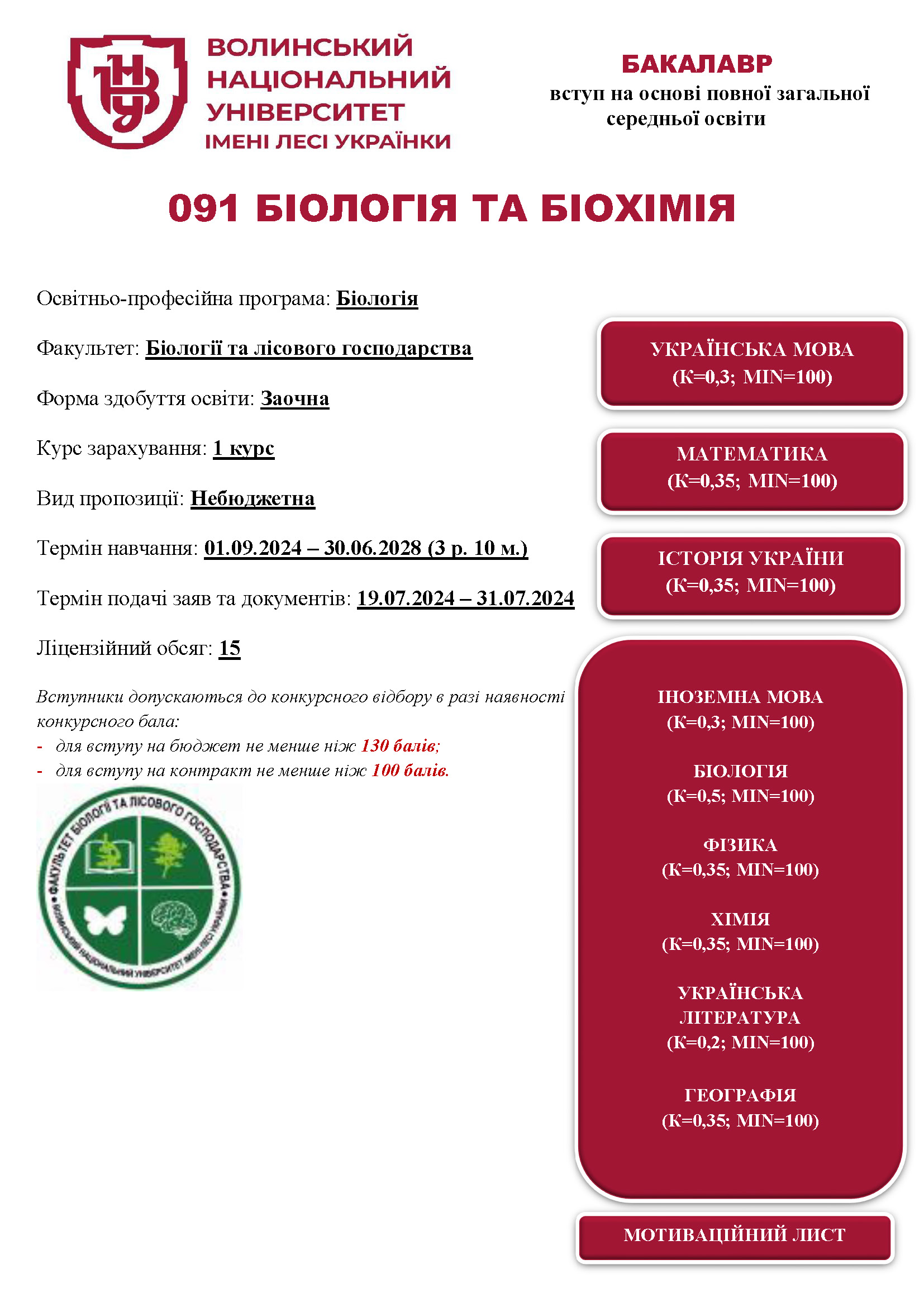 Біологія (заочна, ПЗСО) – Приймальна комісія Волинського національного університету імені Лесі Українки