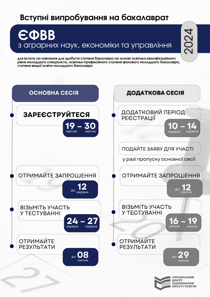 ЄФВВ з аграрних наук, економіки та управління відбуватиметься за календарним планом, затвердженим Міністерством освіти і науки України.
