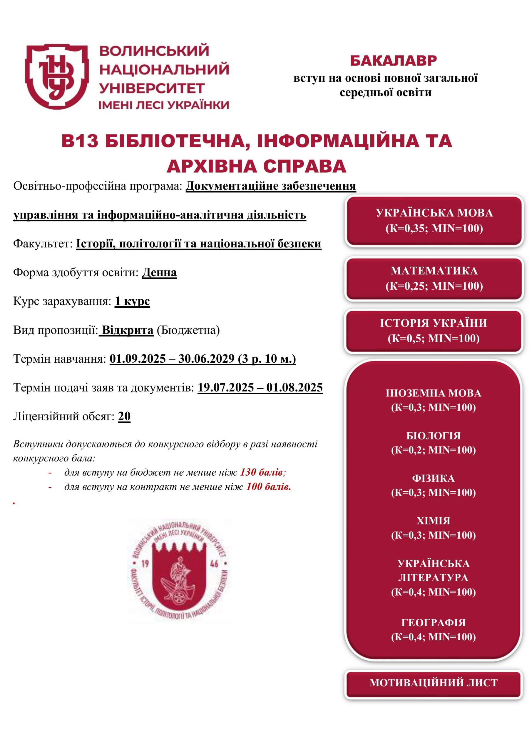 В13 Бібліотечна, інформаційна та архівна справа/ Документаційне забезпечення управління та інформаційно-аналітична діяльність