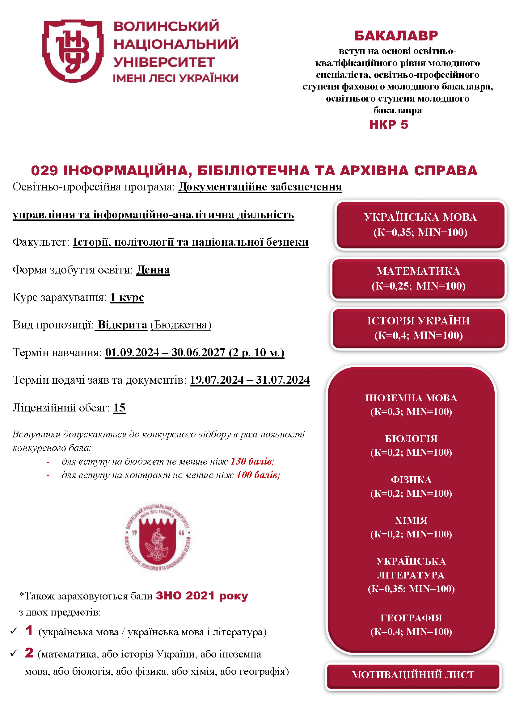 Документаційне забезпечення управління та інформаційно-аналітична діяльність (НКР 5) – Приймальна комісія Волинського національного університету імені Лесі Українки