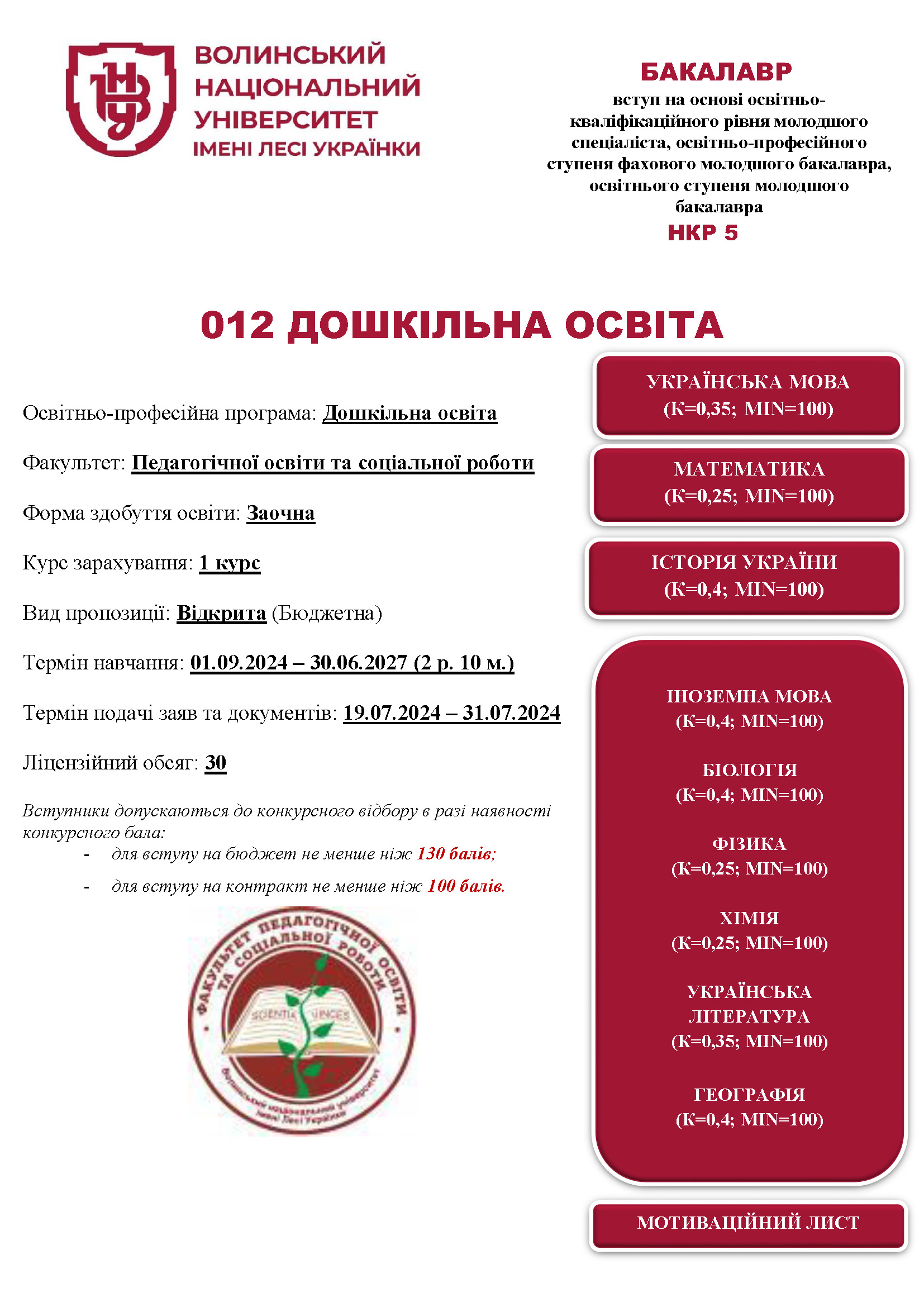 Дошкільна освіта (бюджетна, заочна, НКР 5)
