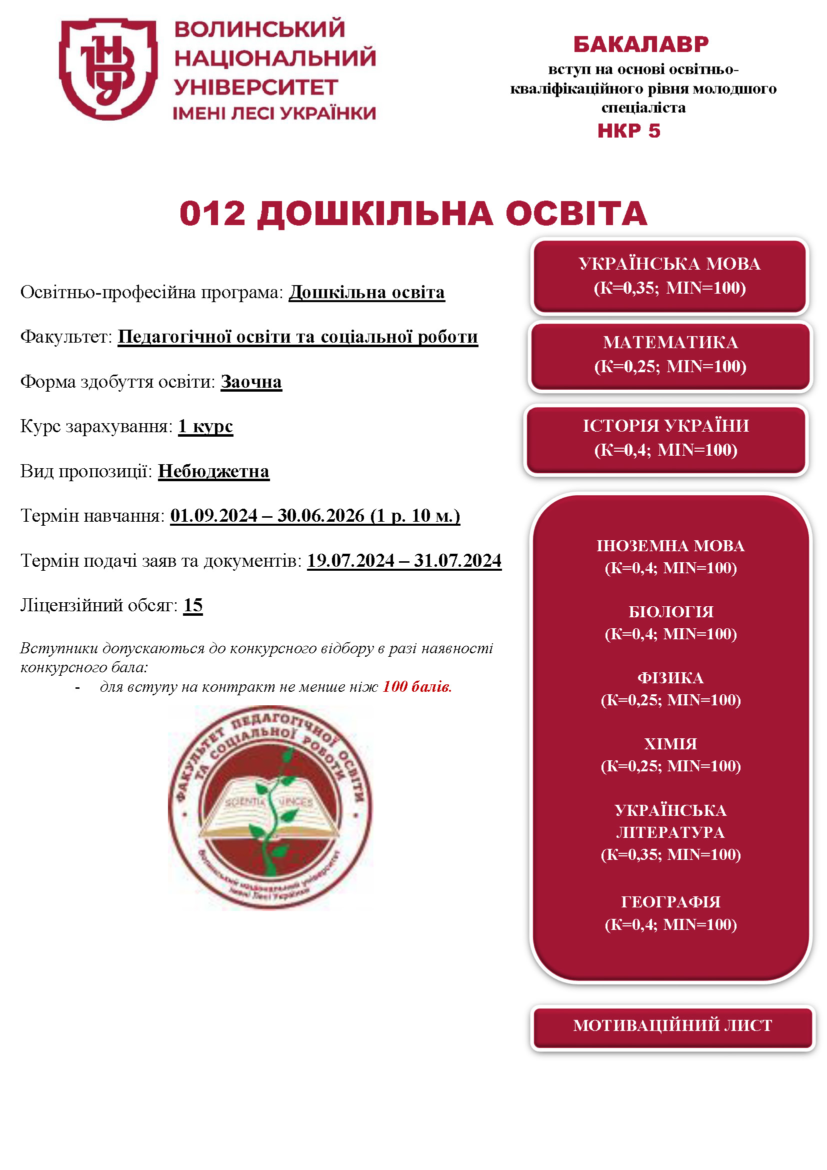 Дошкільна освіта (небюджетна, заочна, НКР 5)