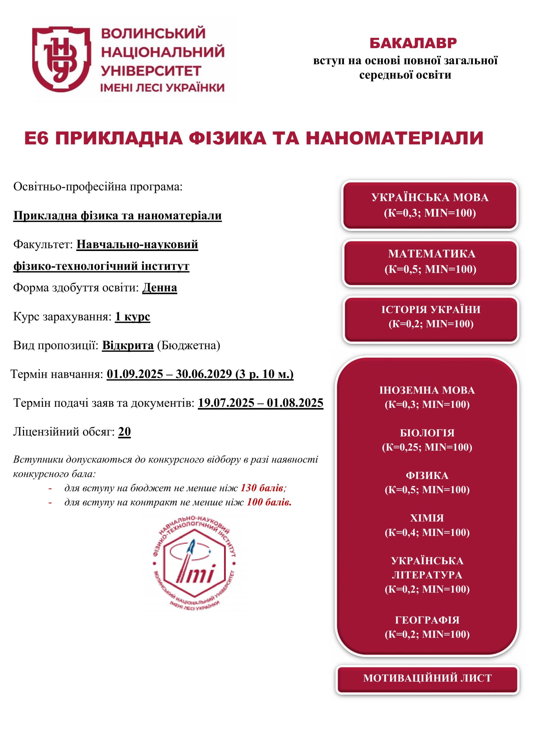 Е6 Прикладна фізика та наноматеріали/ Прикладна фізика та наноматеріали