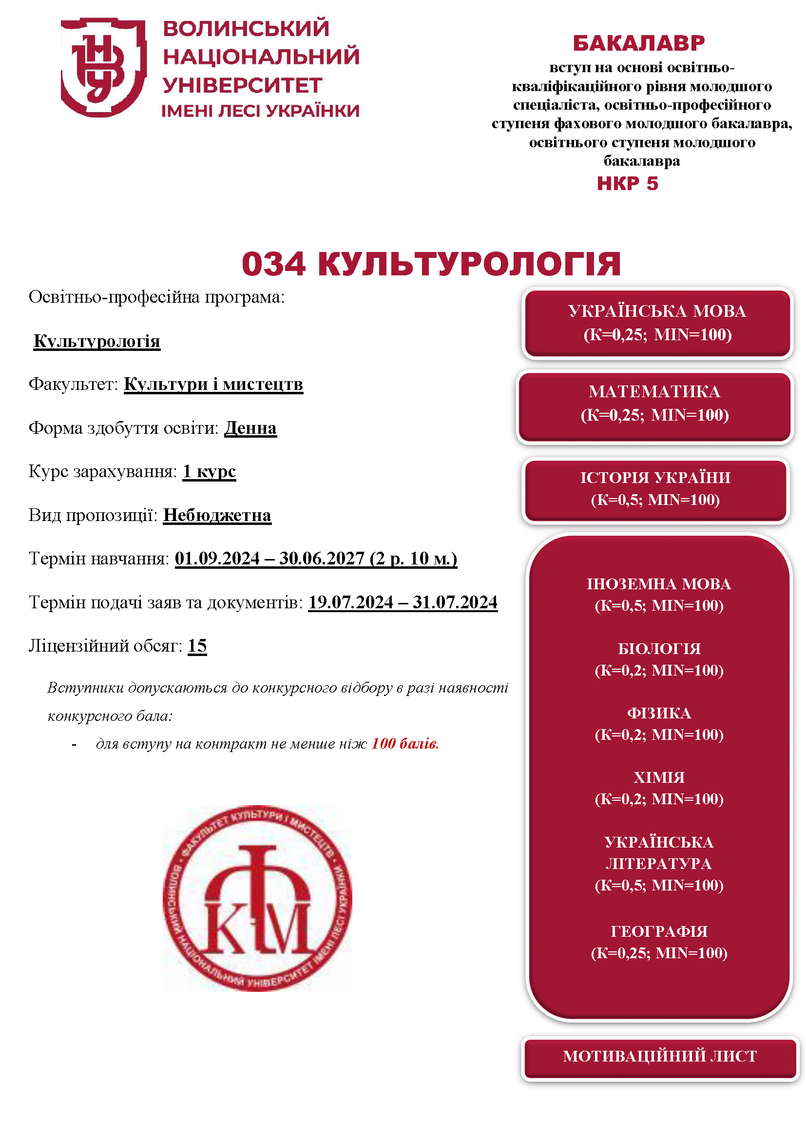Культурологія (НКР 5) – Приймальна комісія Волинського національного університету імені Лесі Українки
