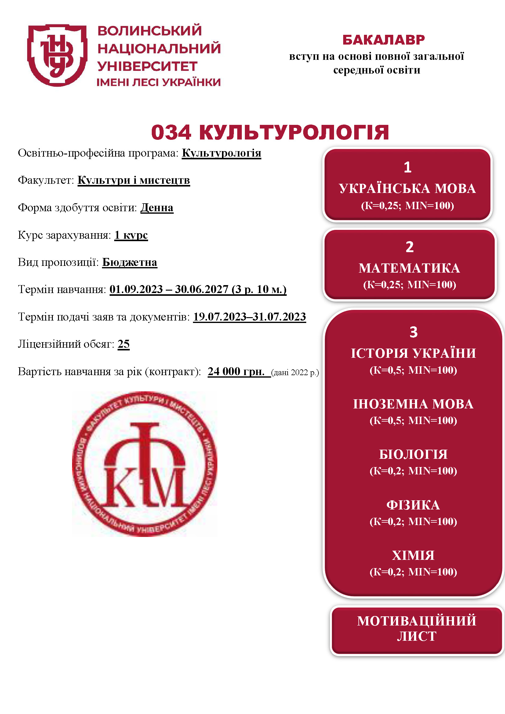 Культурологія (2024) – Приймальна комісія Волинського національного університету імені Лесі Українки