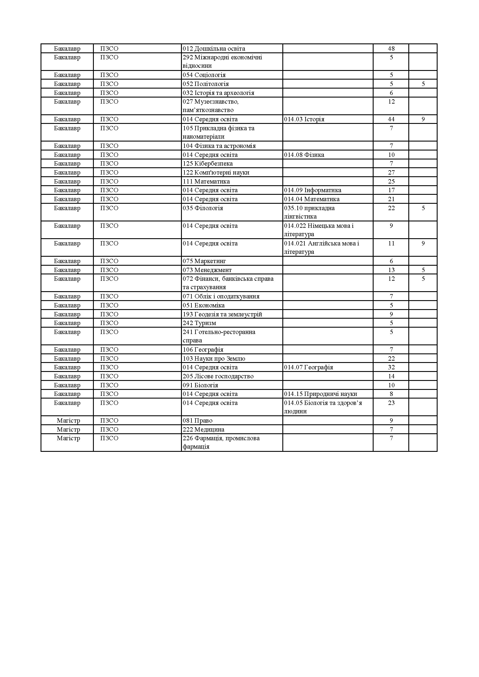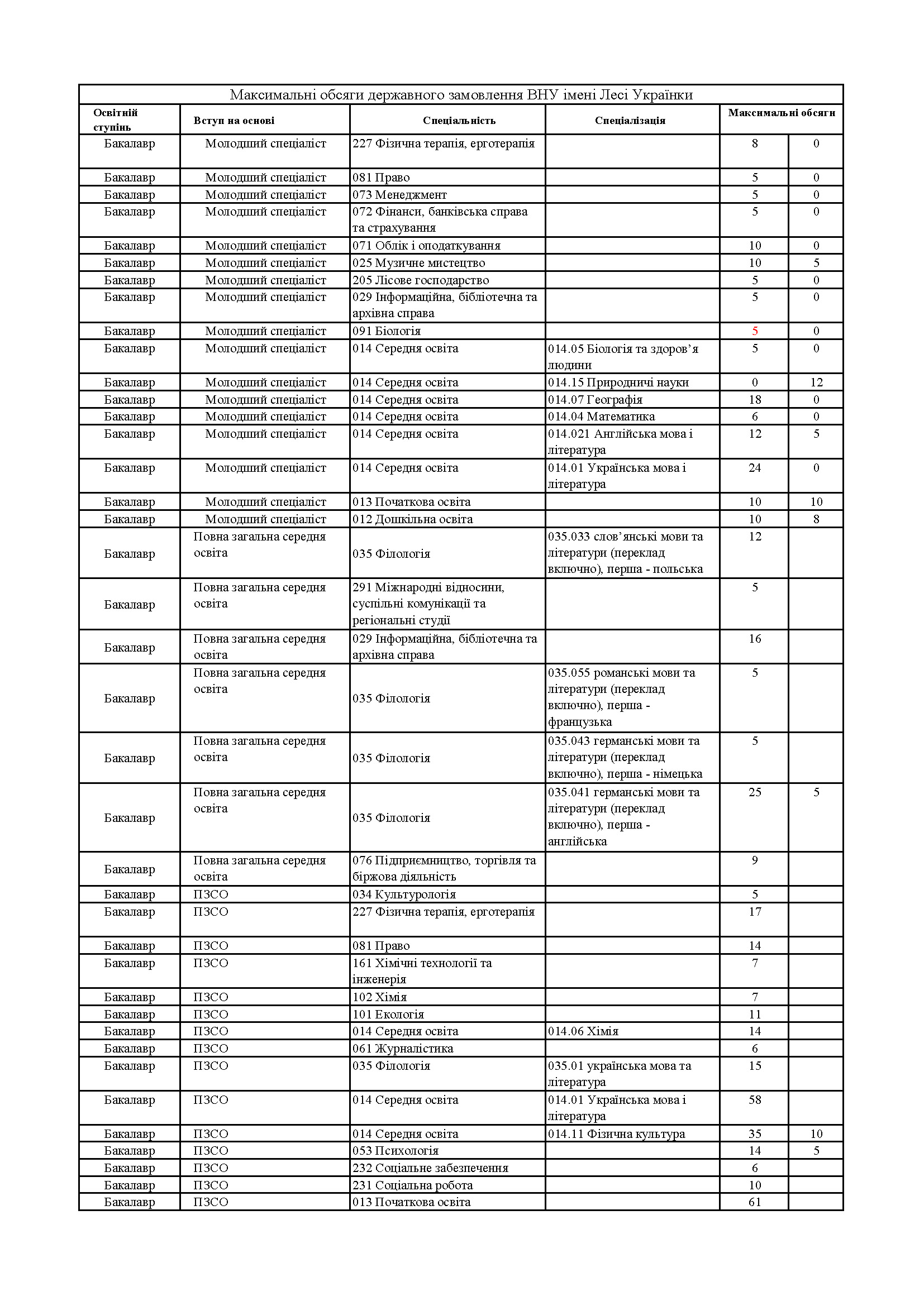 Максимальні обсяги та кваліфікаційний мінімум державного замовлення на прийом у 2022 році до Волинського національного університету імені Лесі Українки, крім фіксованих конкурсних пропозицій спеціальностей 022 Дизайн; 023 Образотворче мистецтво, декоративне мистецтво, реставрація; 024 Хореографія; 025 Музичне мистецтво; 016 Спеціальна освіта 016.02 Олігофренопедагогіка; 017 Фізична культура і спорт; 014 Середня освіта 014.028 Польська мова і література