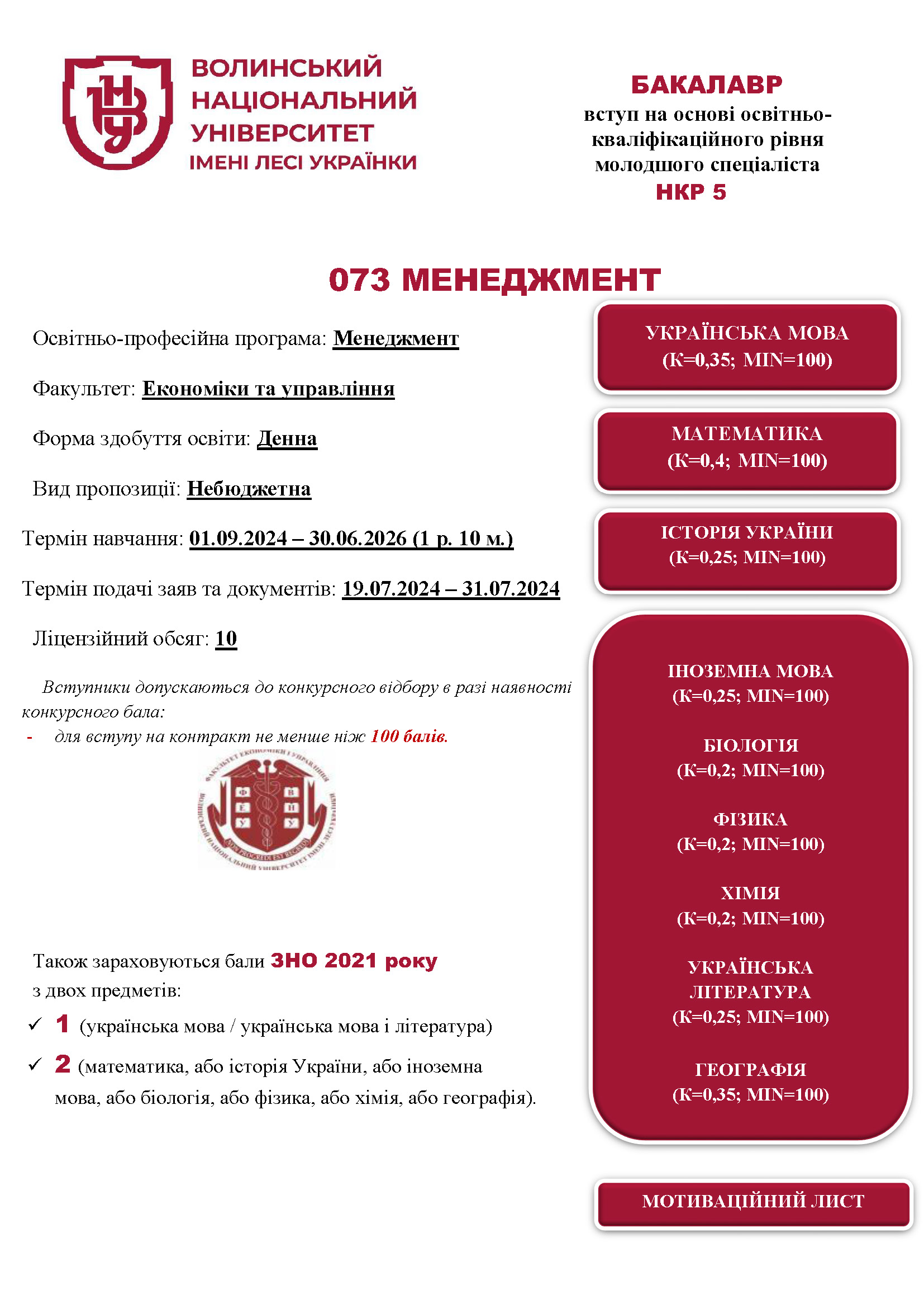 Менеджмент (МС, небюджетна, денна, НКР 5)