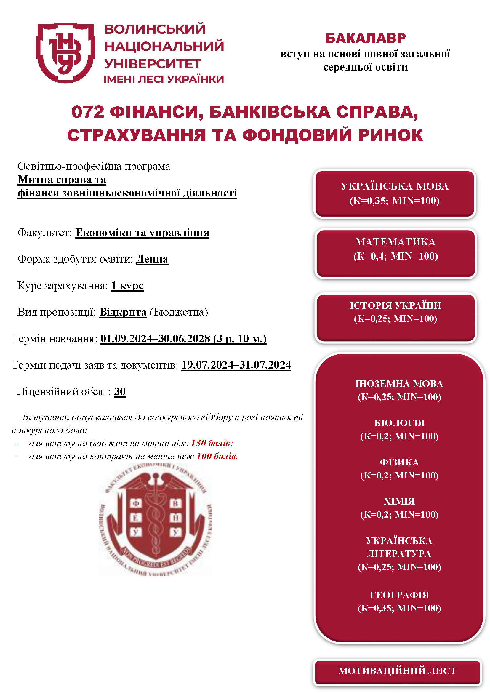 Митна справа та фінанси зовнішньоекономічної діяльності 2024 (ПЗСО)