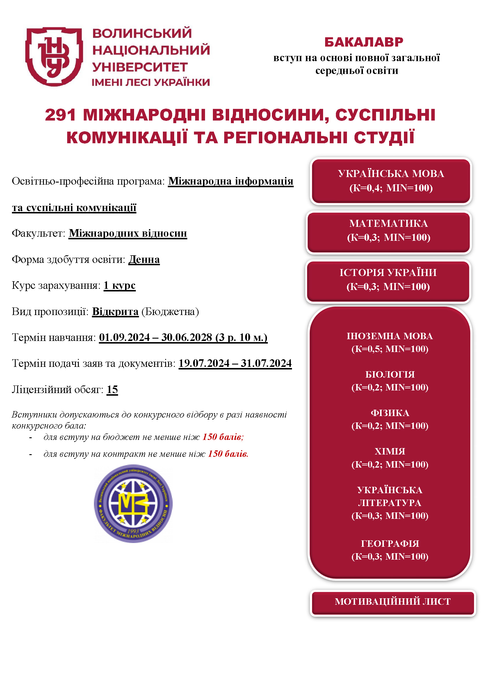Міжнародна інформація та суспільні комунікації (2024) – Приймальна комісія Волинського національного університету імені Лесі Українки