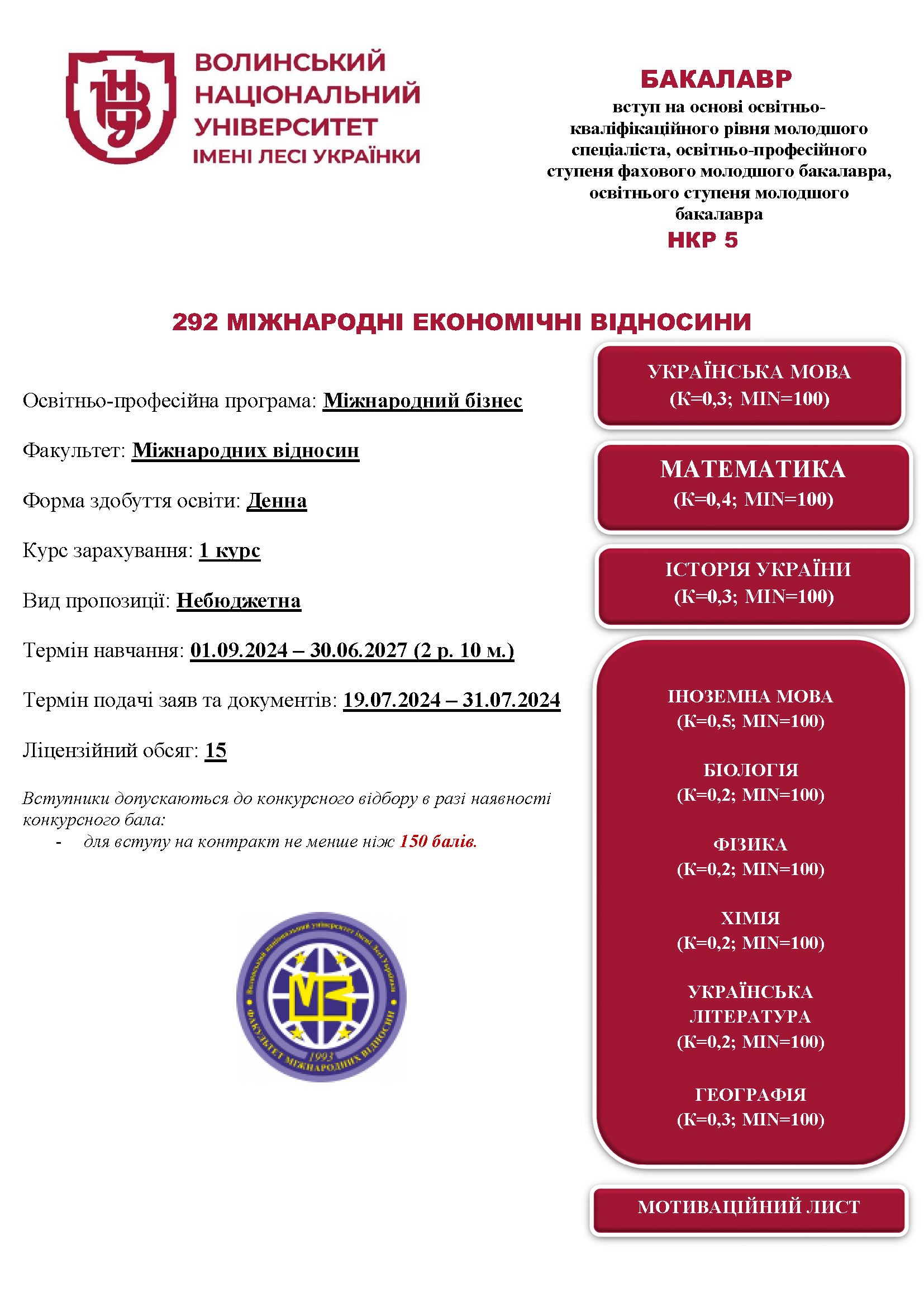 Міжнародний бізнес (НКР 5) – Приймальна комісія Волинського національного університету імені Лесі Українки