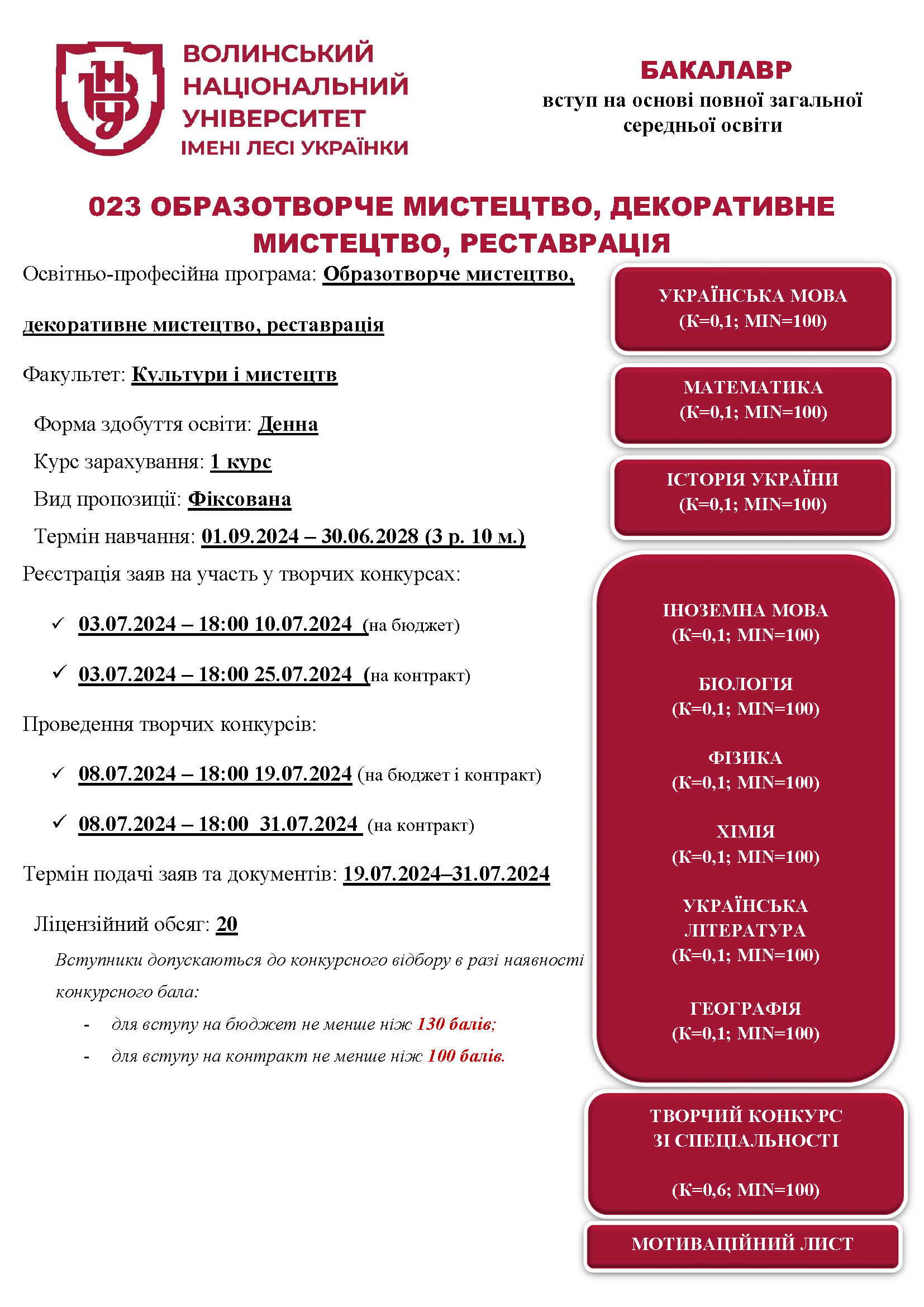 Образотворче мистецтво, декоративне мистецтво, реставрація (2024)