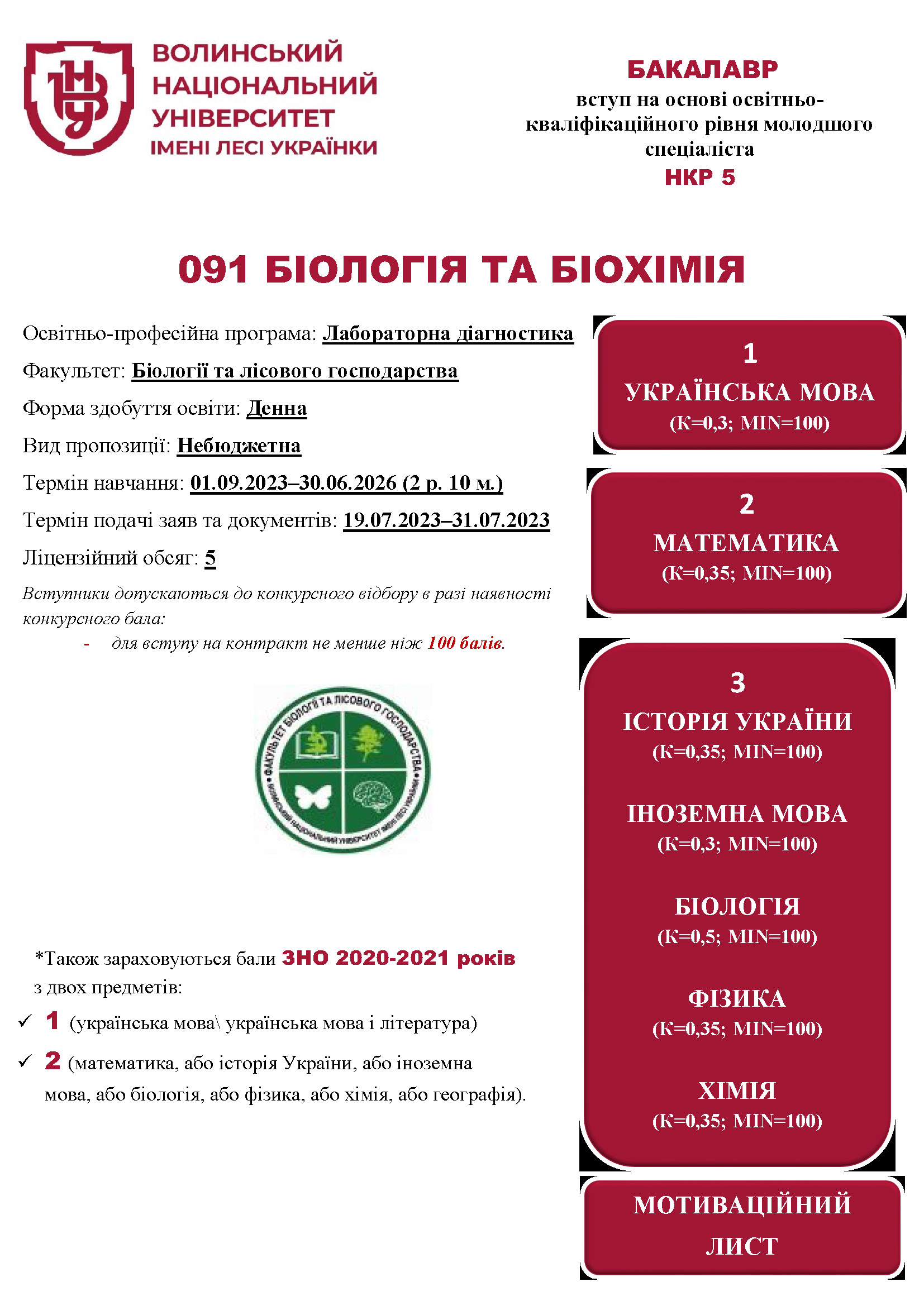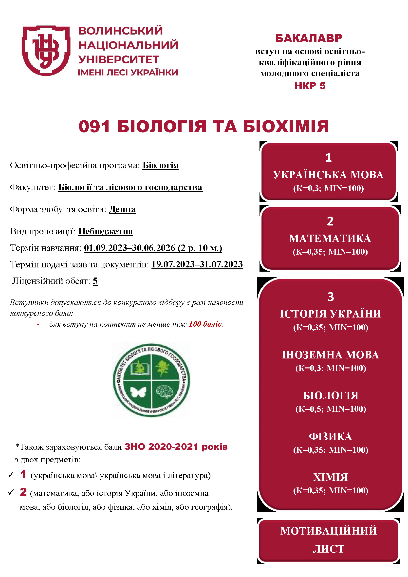 Освітня програма «Біологія» (денна форма здобуття освіти, вид пропозиції: закрита/небюджетна)