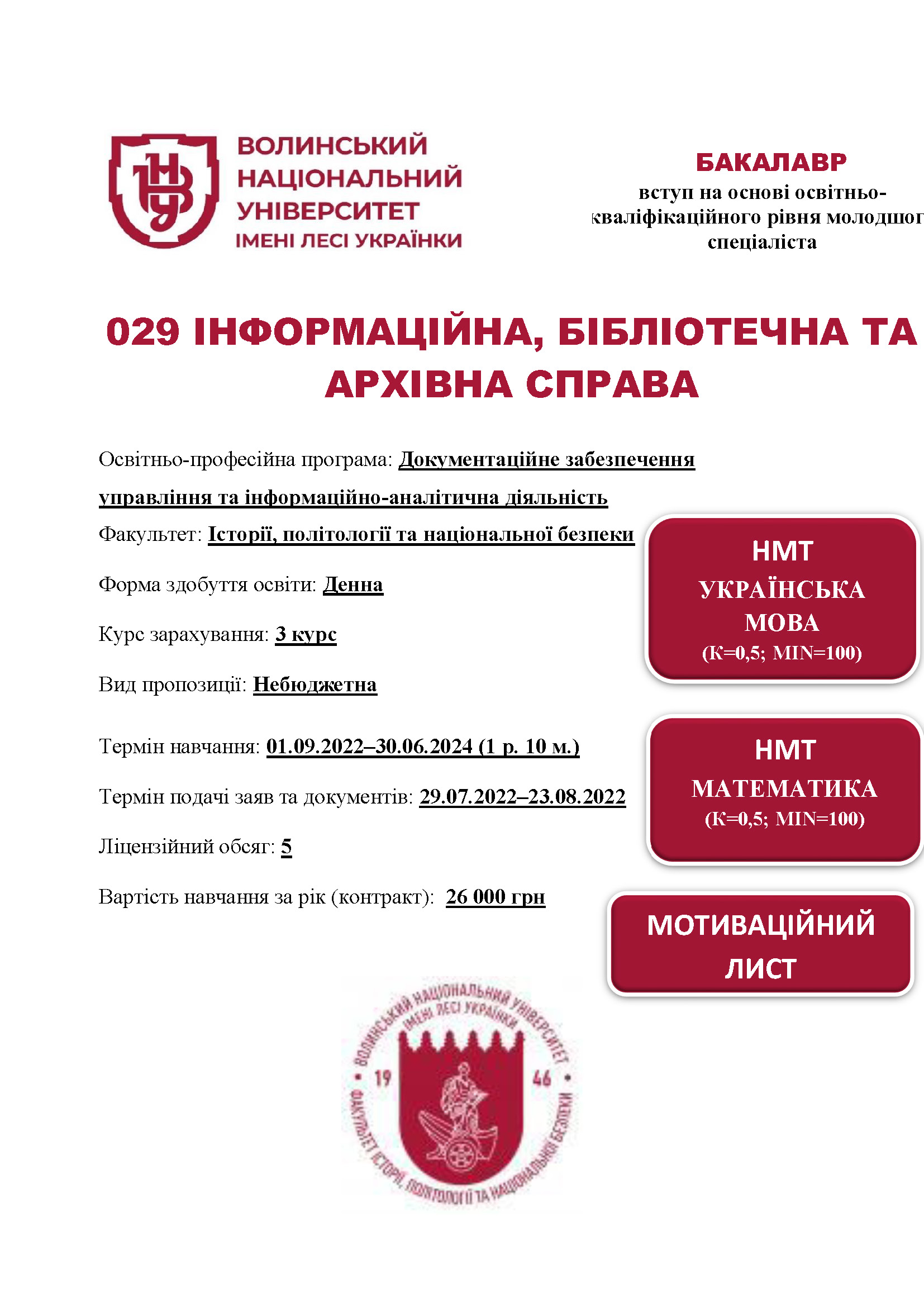 Освітня програма «Документаційне забезпечення управління та інформаційно-аналітична діяльність» (МС, 3-й курс, денна форма здобуття освіти)