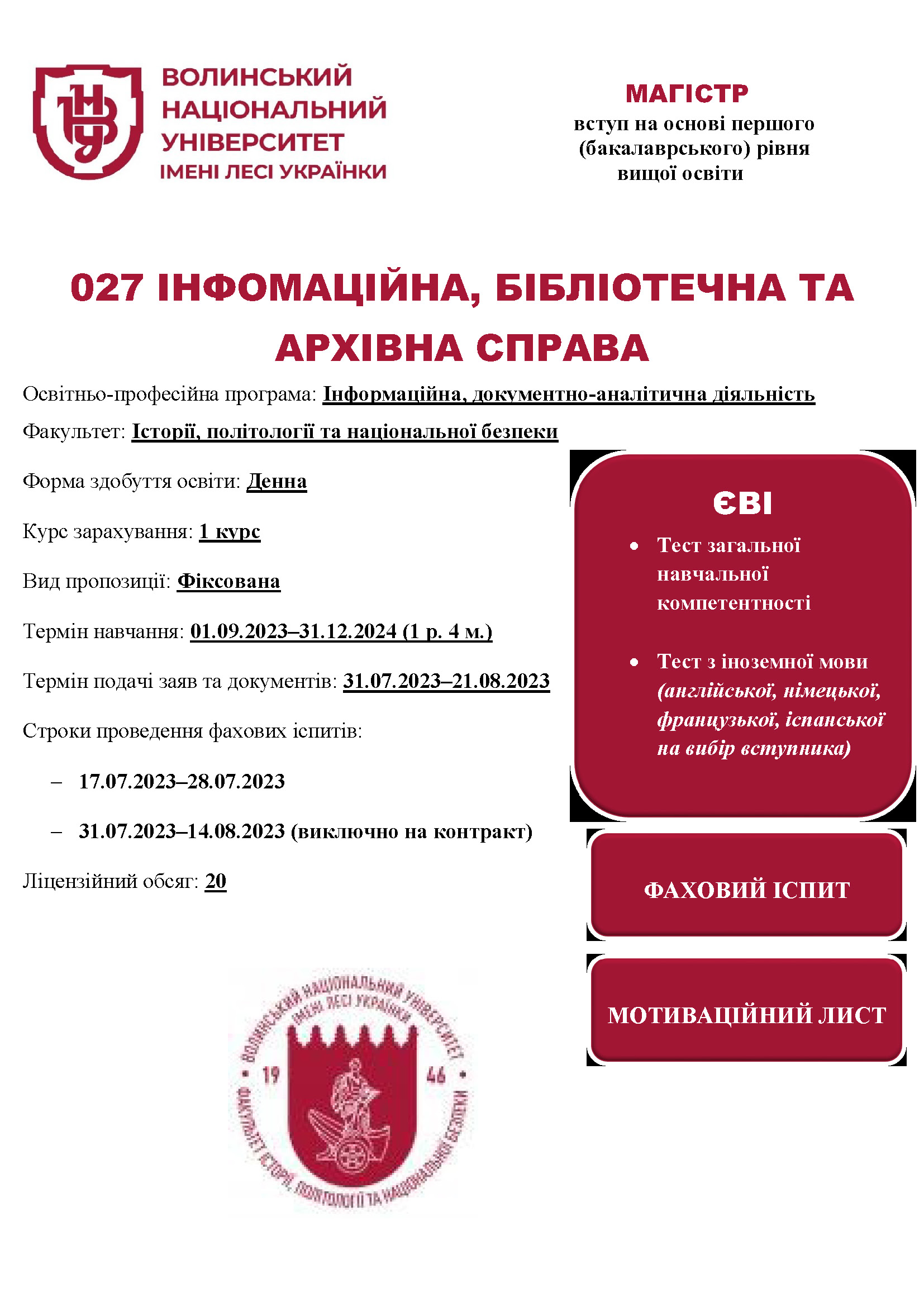 Освітня програма «Інформаційна, документно-аналітична діяльність» (М)