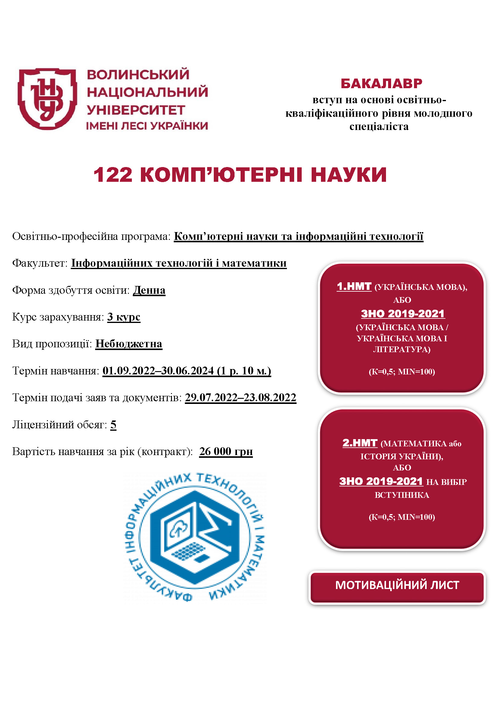 Освітня програма «Комп’ютерні науки та інформаційні технології» (МС, 3-й курс)