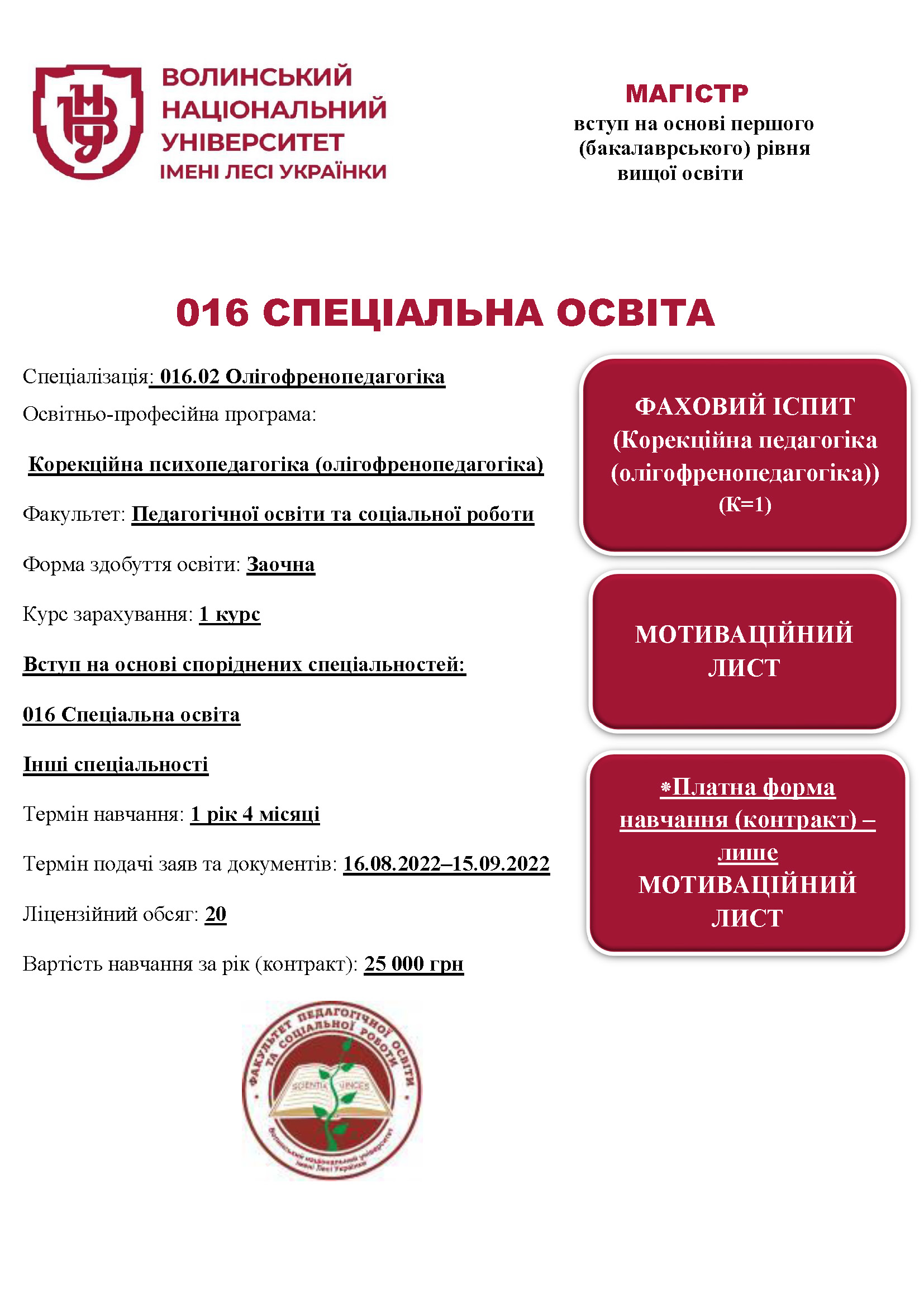 Освітня програма «Корекційна психопедагогіка (олігофренопедагогіка)» (заочна форма здобуття освіти)