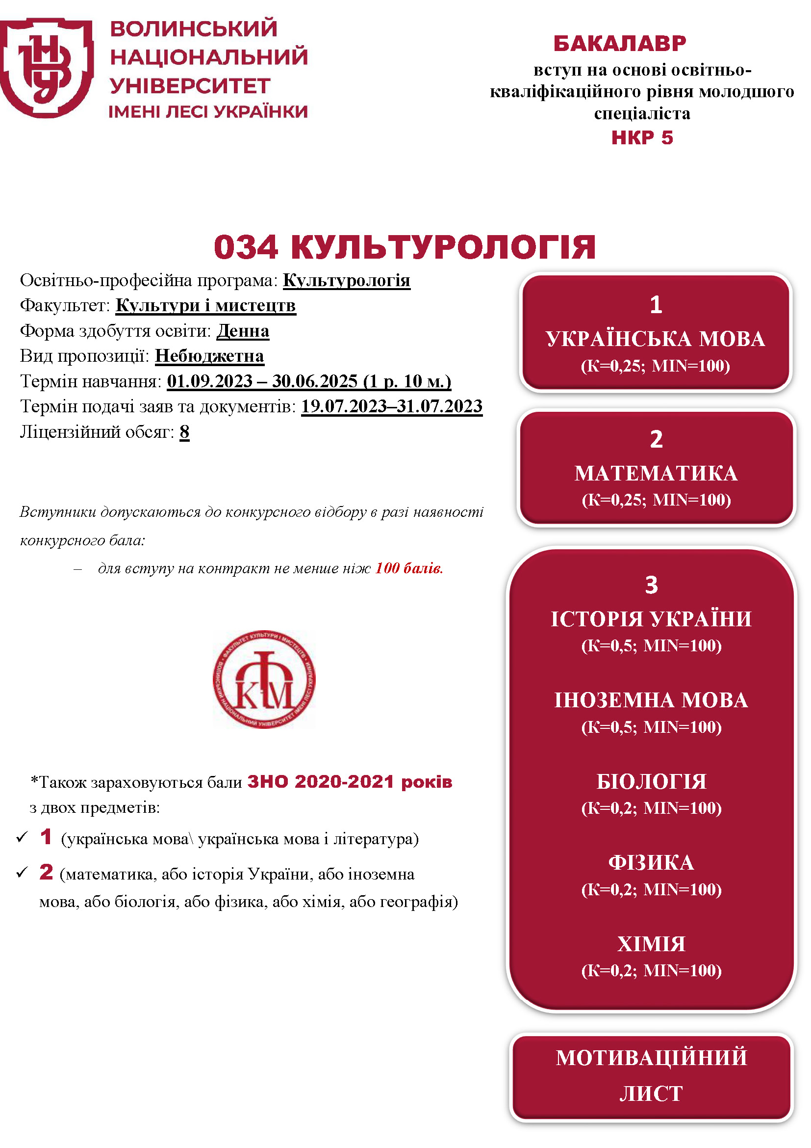Освітня програма «Культурологія» (денна форма здобуття освіти, вид пропозиції: небюджетна) – Приймальна комісія Волинського національного університету імені Лесі Українки