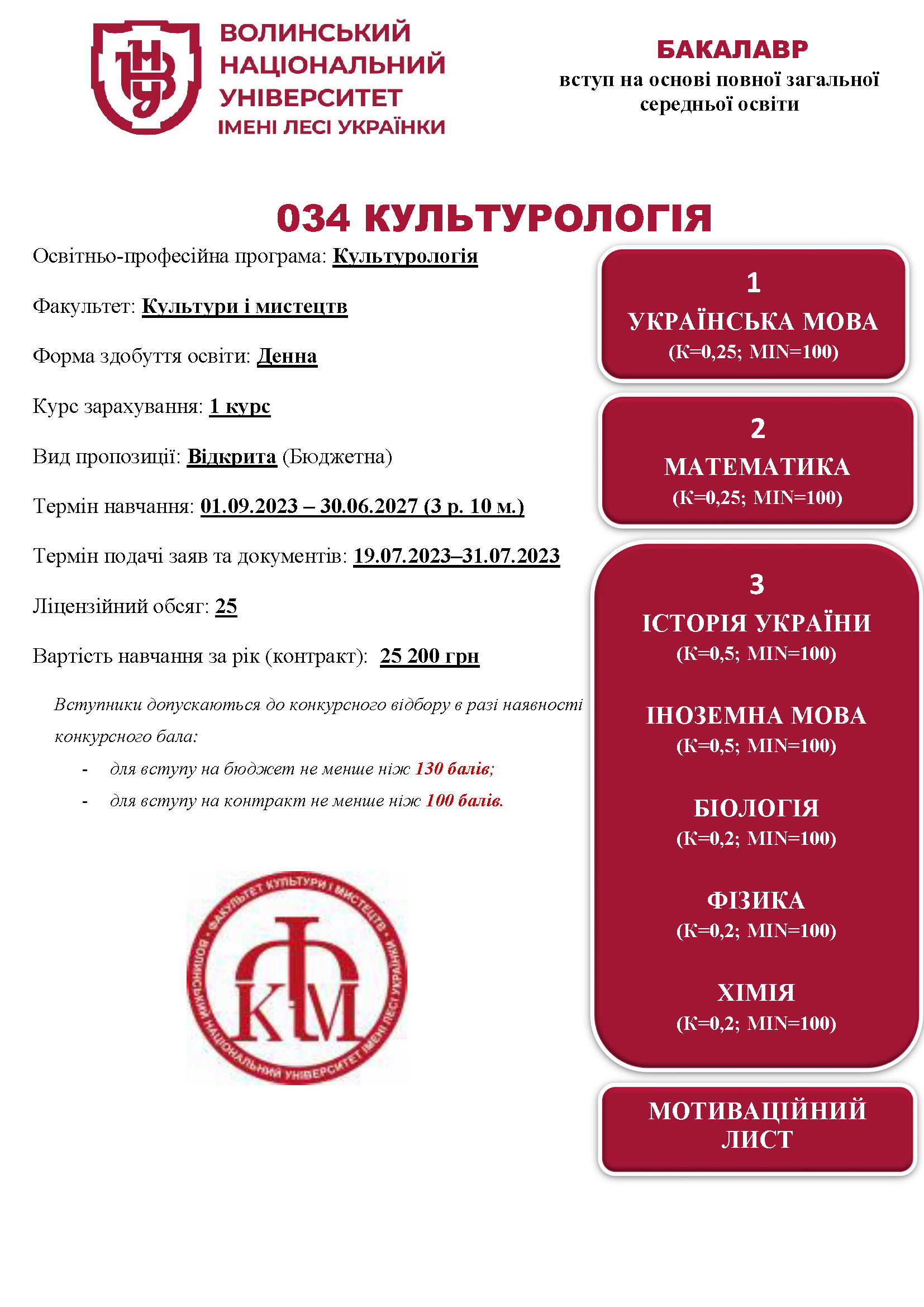Освітня програма «Культурологія» – Приймальна комісія Волинського національного університету імені Лесі Українки