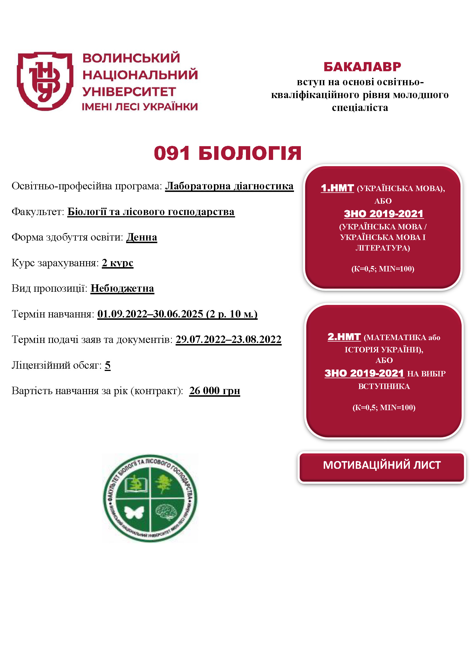 Освітня програма «Лабораторна діагностика» (МС, 2-й курс) – Приймальна комісія Волинського національного університету імені Лесі Українки
