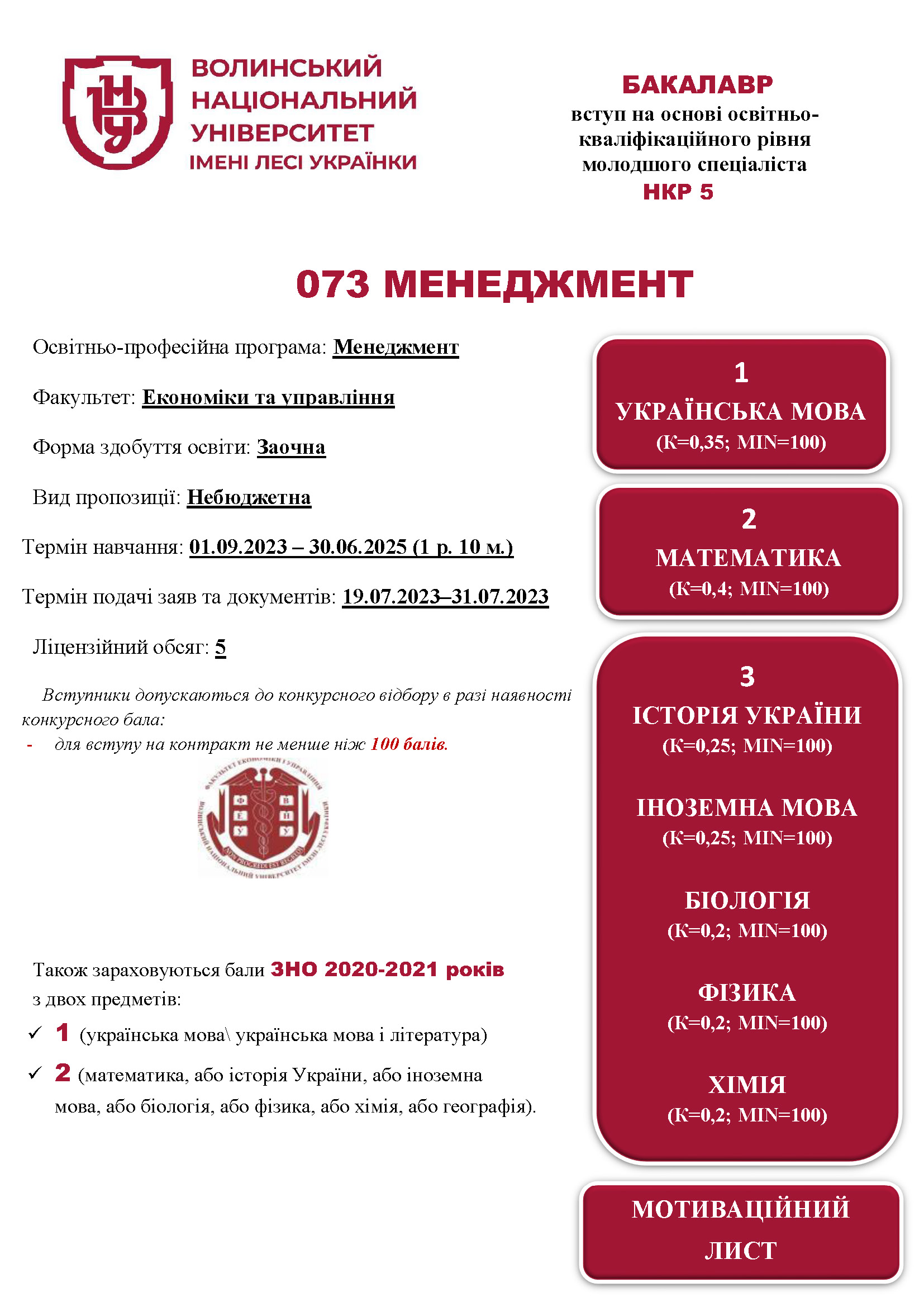 Освітня програма «Менеджмент» (заочна форма здобуття освіти, вид пропозиції: закрита/небюджетна)