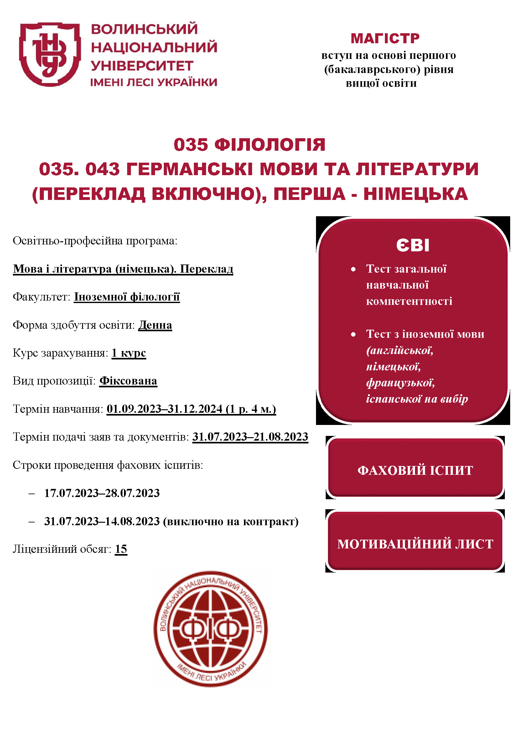 Освітня програма «Мова і література (німецька). Переклад» (М)