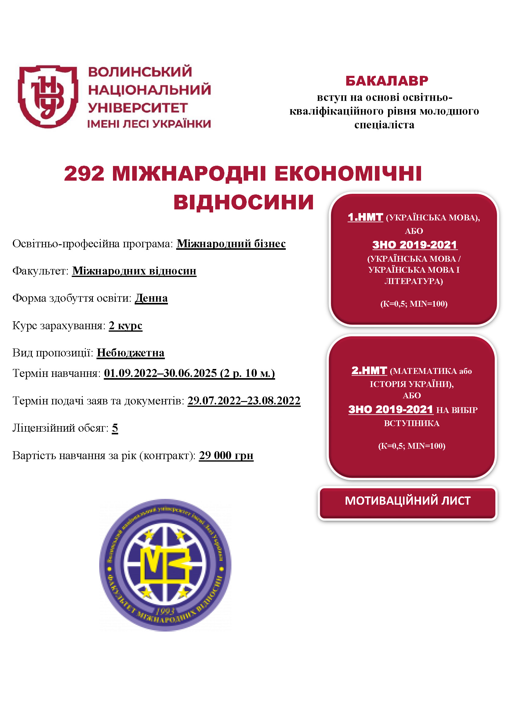 Освітня програма «Міжнародний бізнес» (МС, 2-й курс, денна форма здобуття освіти)