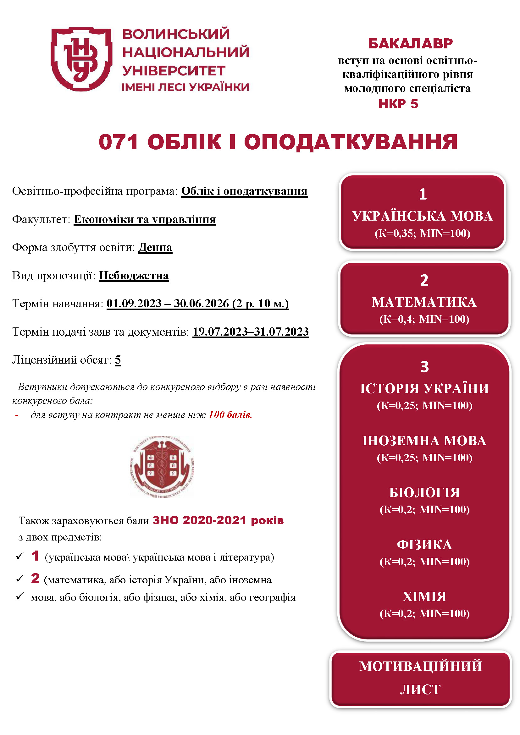 Освітня програма «Облік і оподаткування» (денна форма здобуття освіти, вид пропозиції: закрита/небюджетна)