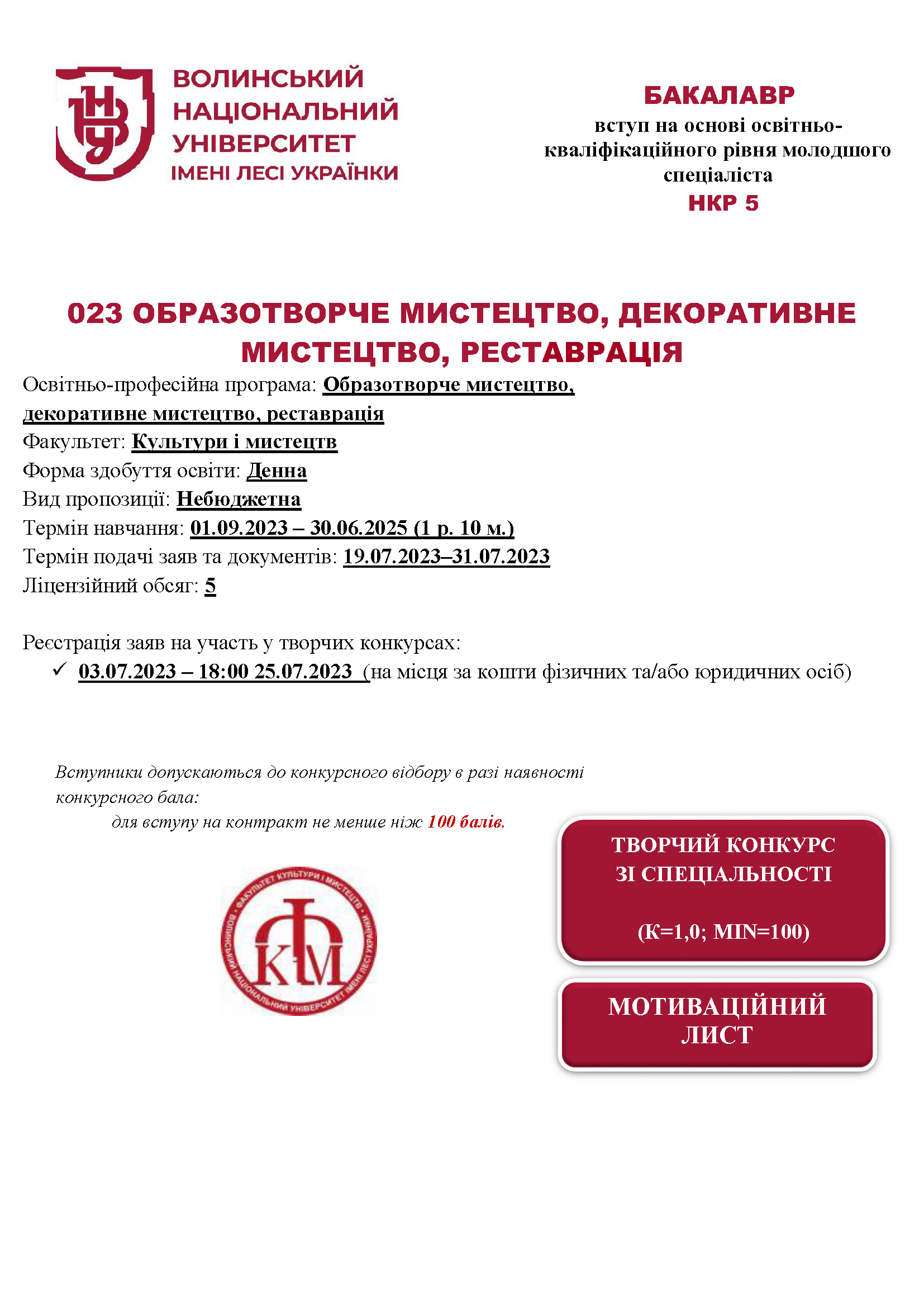 Освітня програма «Образотворче мистецтво, декоративне мистецтво, реставрація» (денна форма здобуття освіти, вид пропозиції: небюджетна) – Приймальна комісія Волинського національного університету імені Лесі Українки