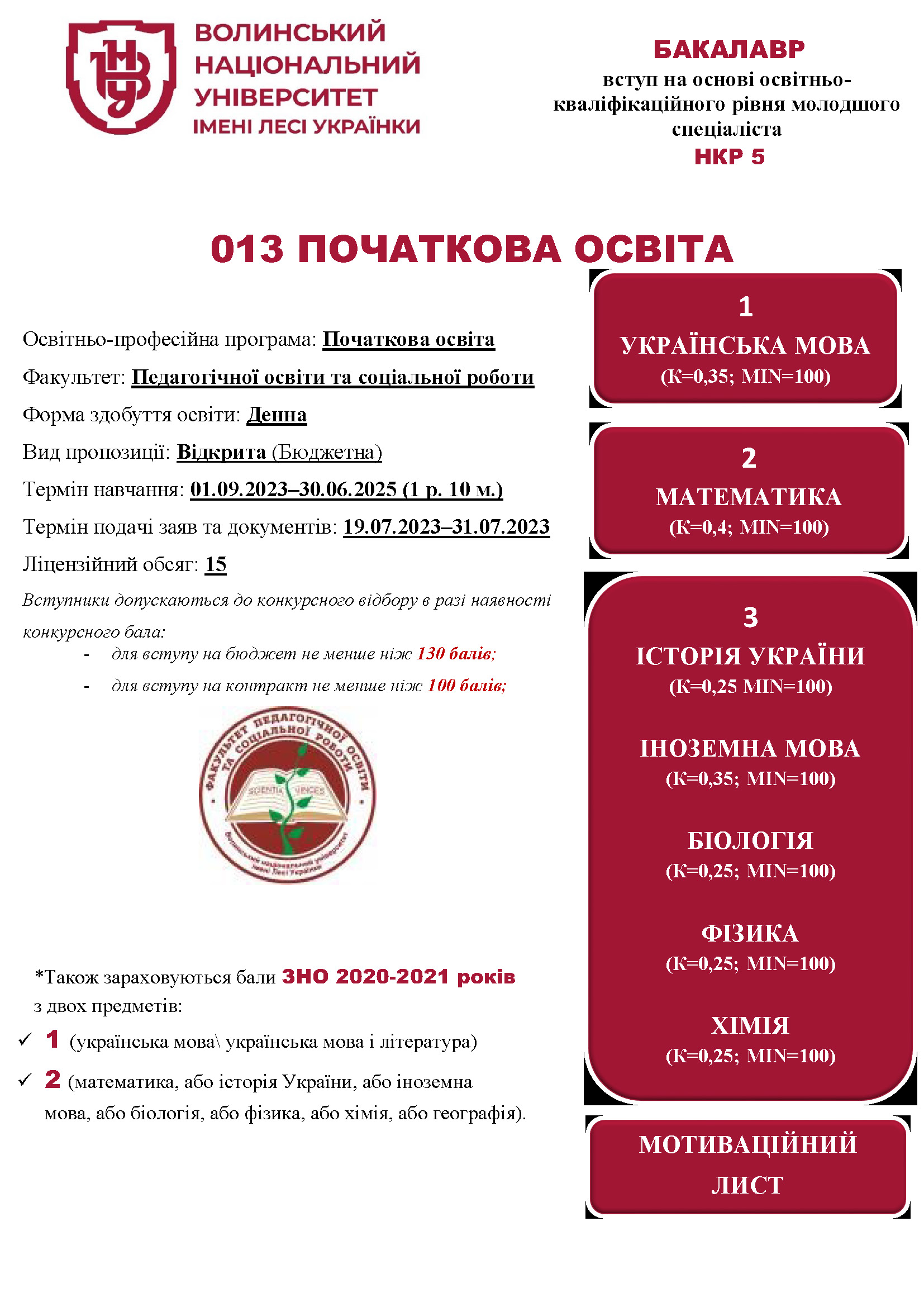 Освітня програма «Початкова освіта» (денна форма здобуття освіти, вид пропозиції: бюджетна)