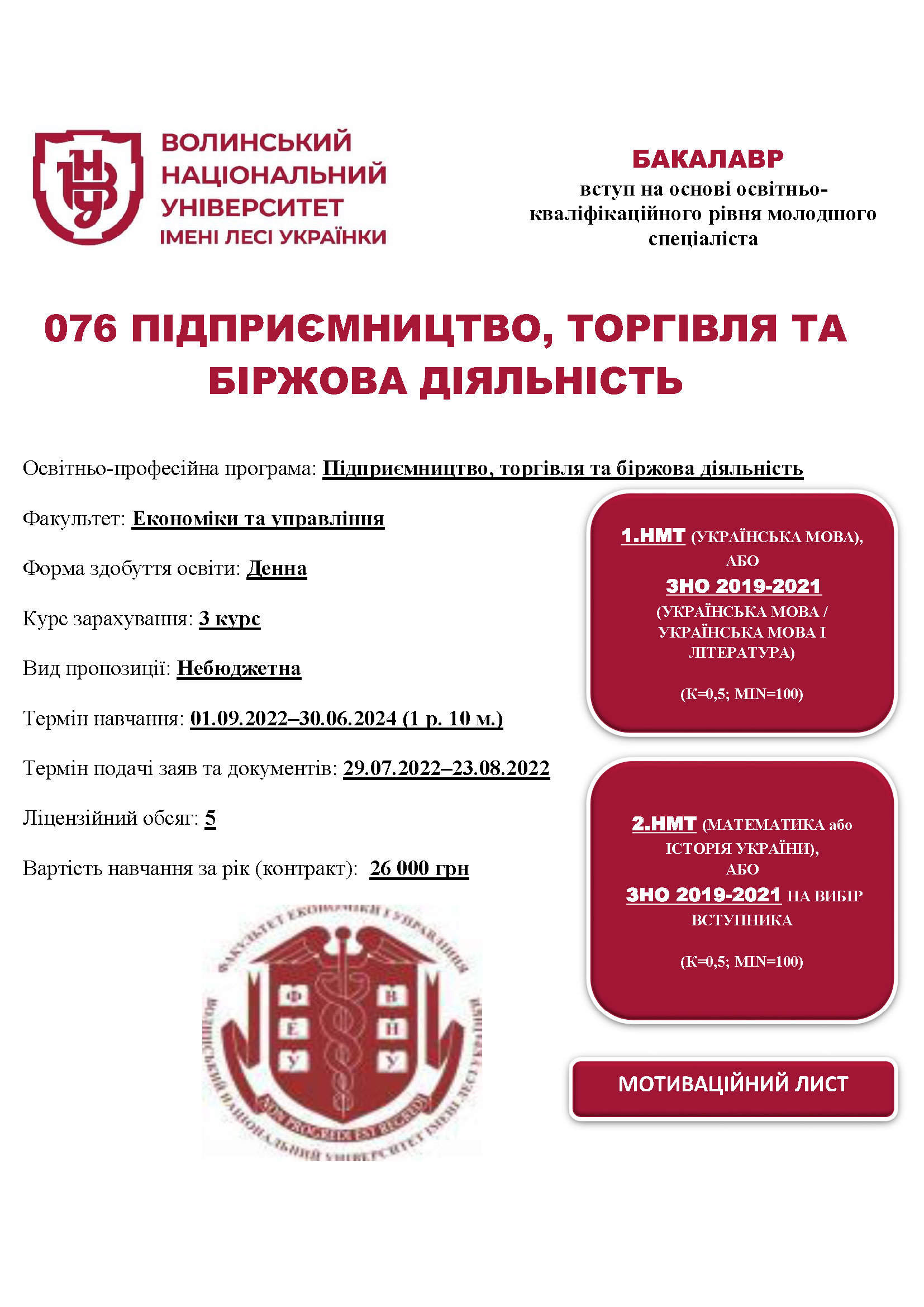 Освітня програма «Підприємництво, торгівля та біржова діяльність» (МС, 3-й курс, денна форма здобуття освіти)