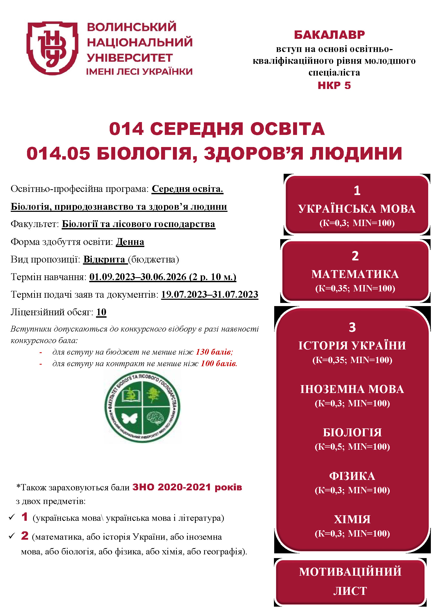 Освітня програма «Середня освіта. Біологія, природознавство, здоров’я людини» (вид пропозиції: відкрита/бюджетна)