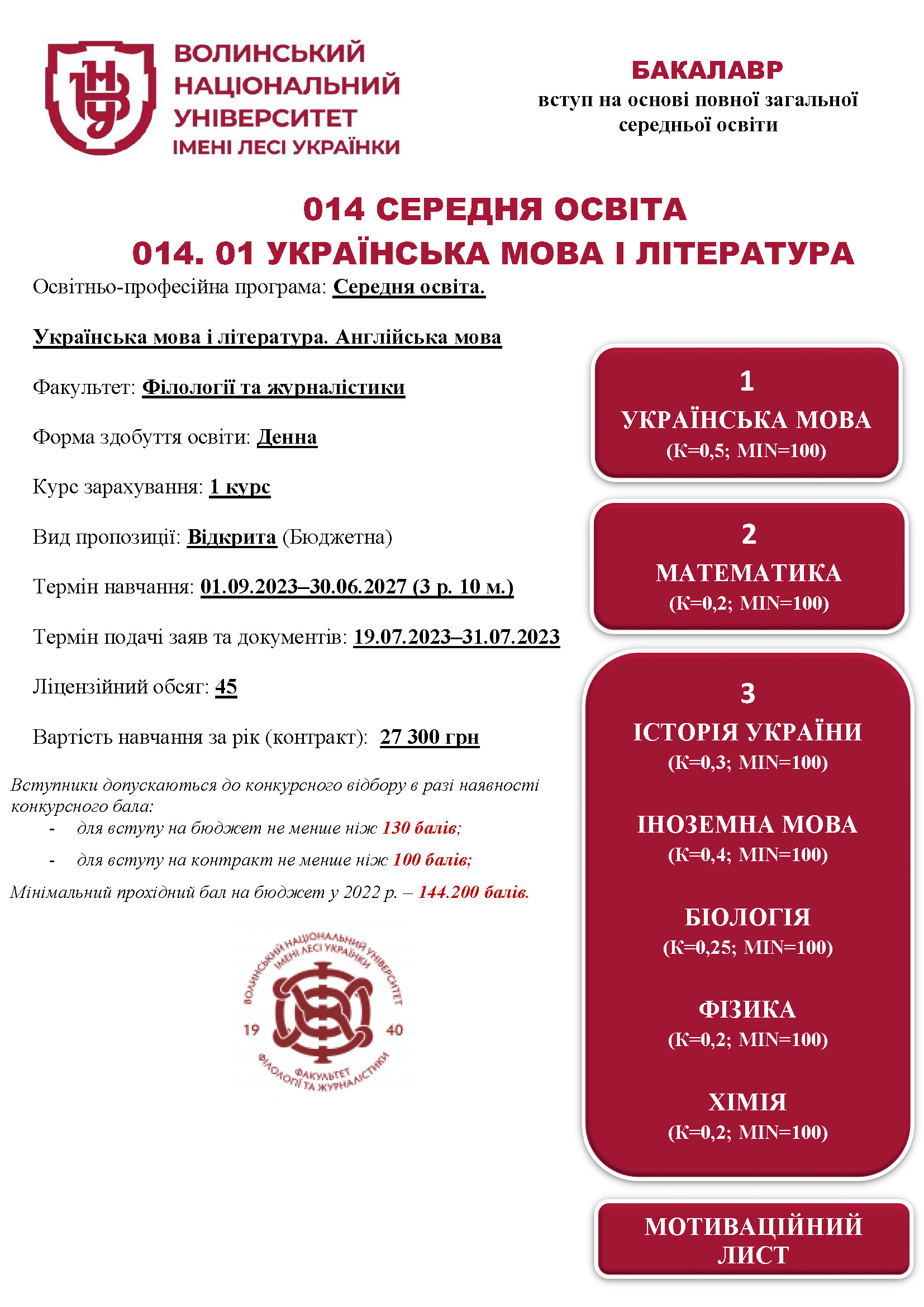 Освітня програма «Середня освіта. Українська мова та література. Англійська мова»