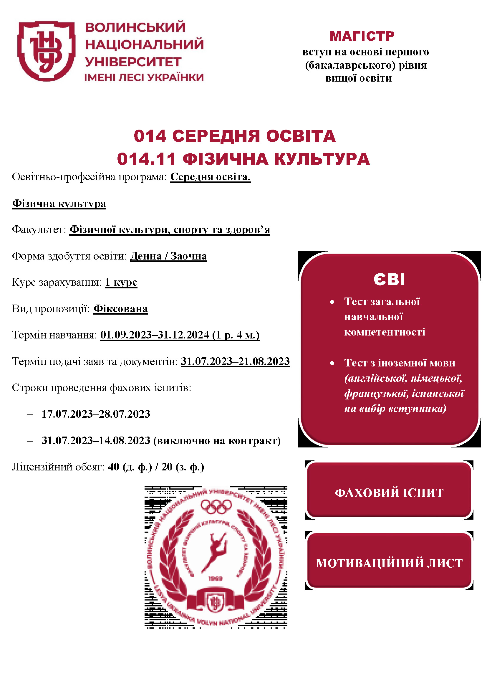 Освітня програма «Середня освіта. Фізична культура» (М) – Приймальна комісія Волинського національного університету імені Лесі Українки