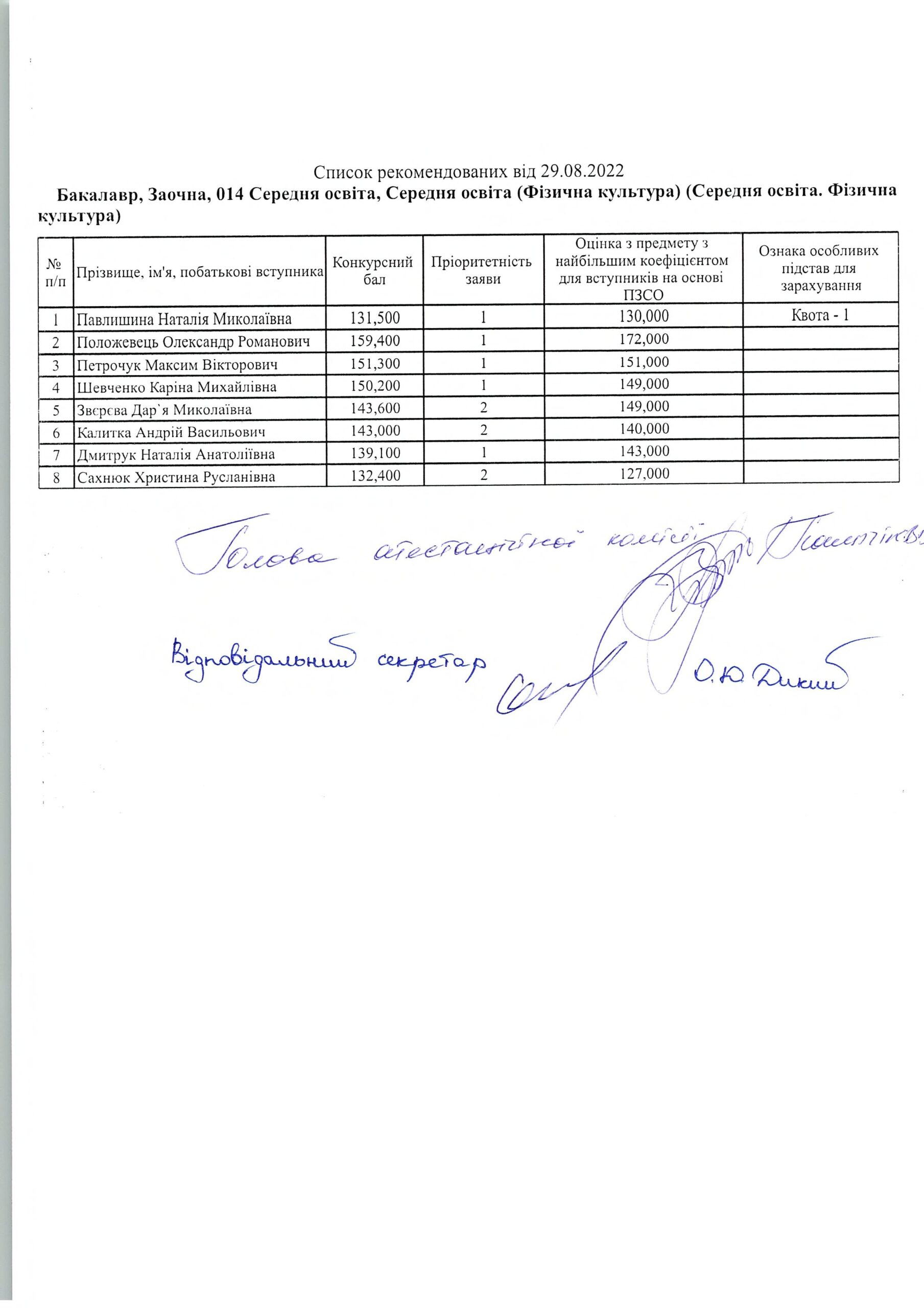 Освітня програма «Середня освіта. Фізична культура» (заочна форма здобуття освіти)