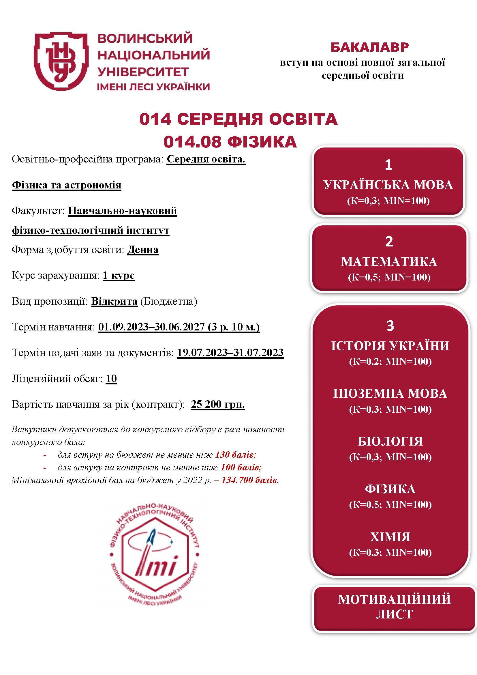 Освітня програма «Середня освіта. Фізика» – Приймальна комісія Волинського національного університету імені Лесі Українки