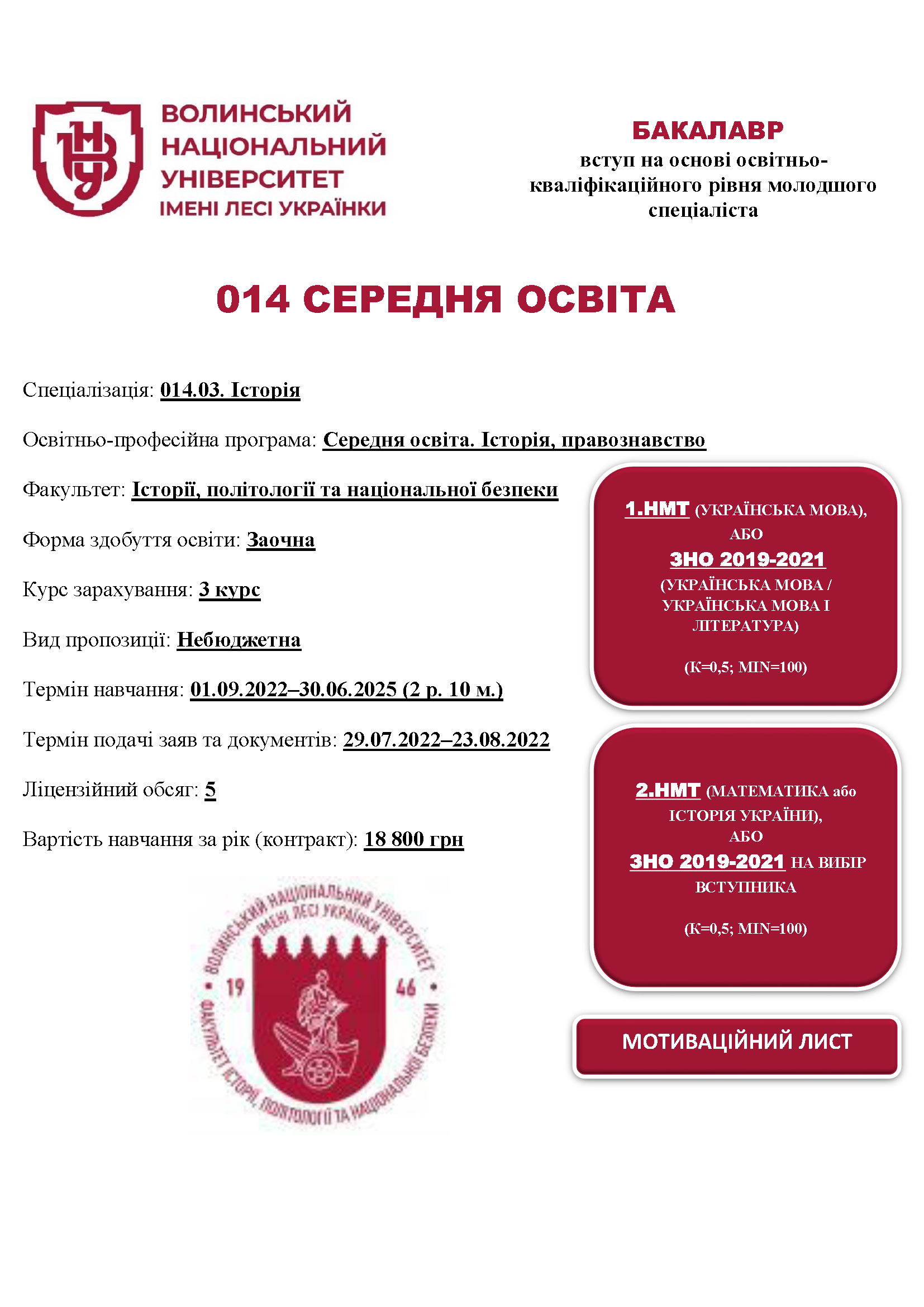 Освітня програма «Середня освіта. Історія, правознавство» (МС, 3-й курс, заочна форма здобуття освіти)