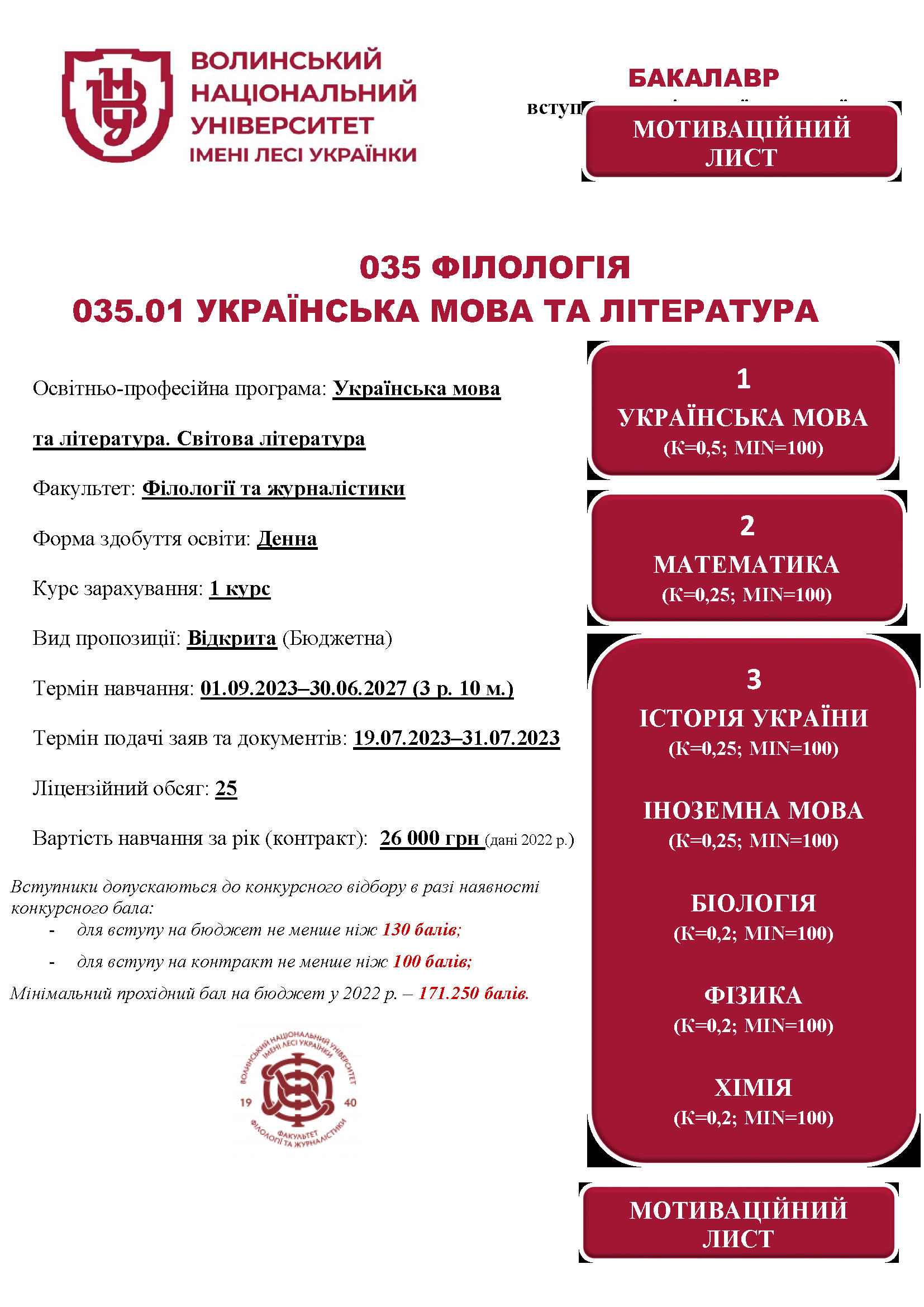 Освітня програма «Українська мова та література. Світова література» – Приймальна комісія Волинського національного університету імені Лесі Українки