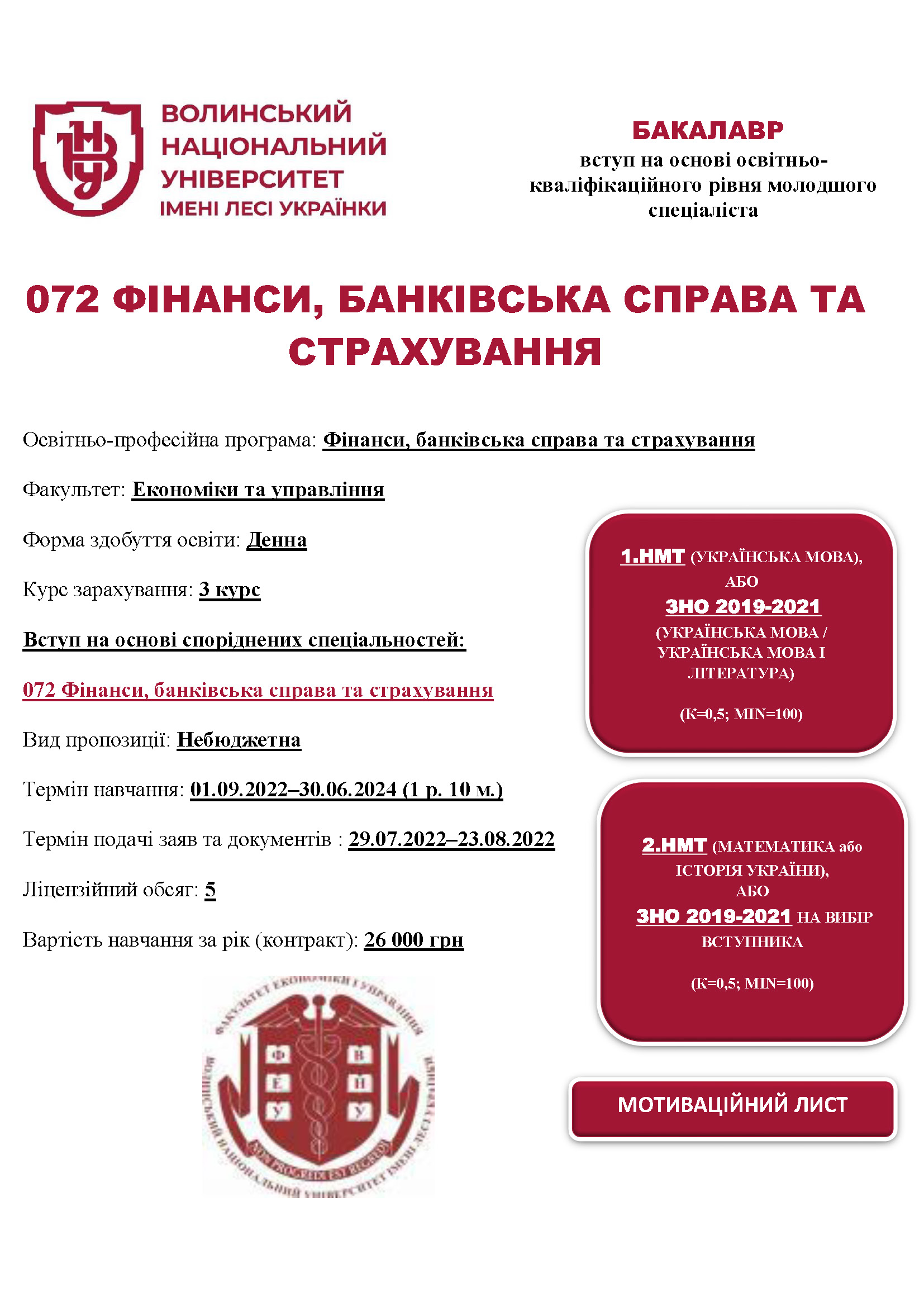 Освітня програма «Фінанси, банківська справа та страхування» (МС, 3-й курс, денна форма здобуття освіти)