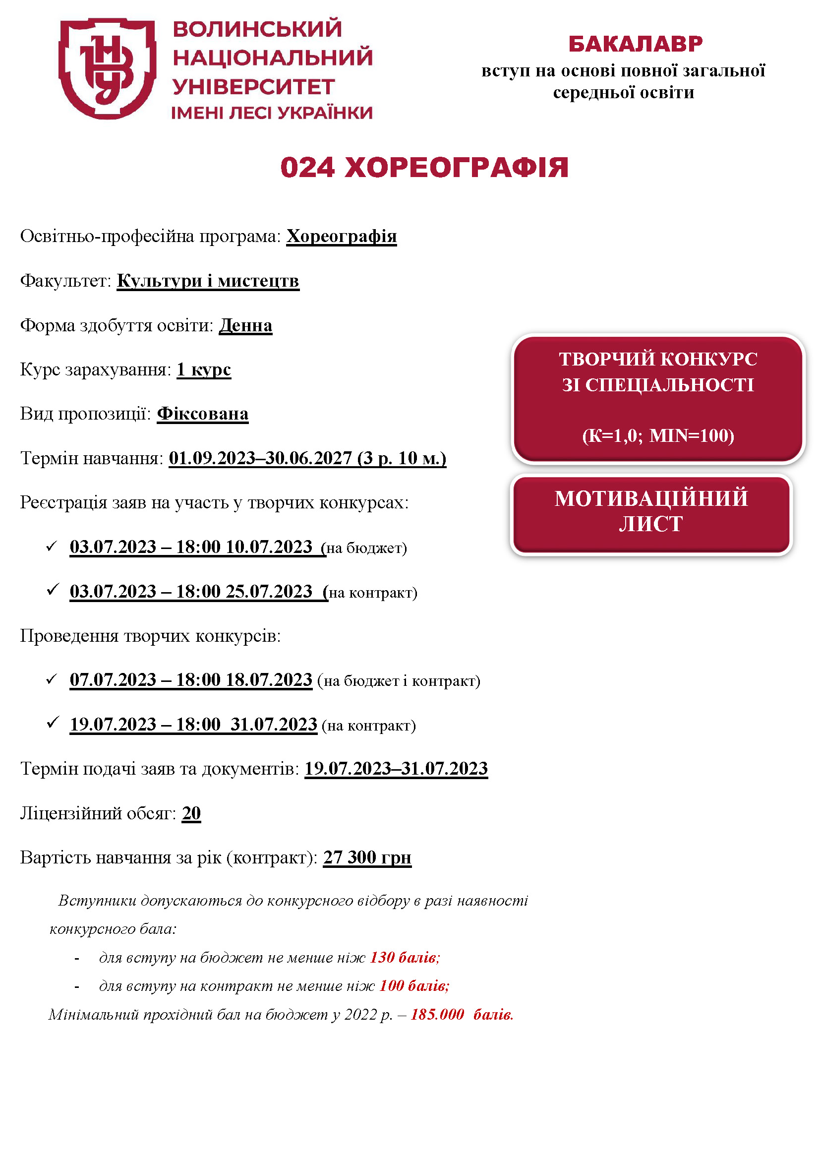 Освітня програма «Хореографія» – Приймальна комісія Волинського національного університету імені Лесі Українки