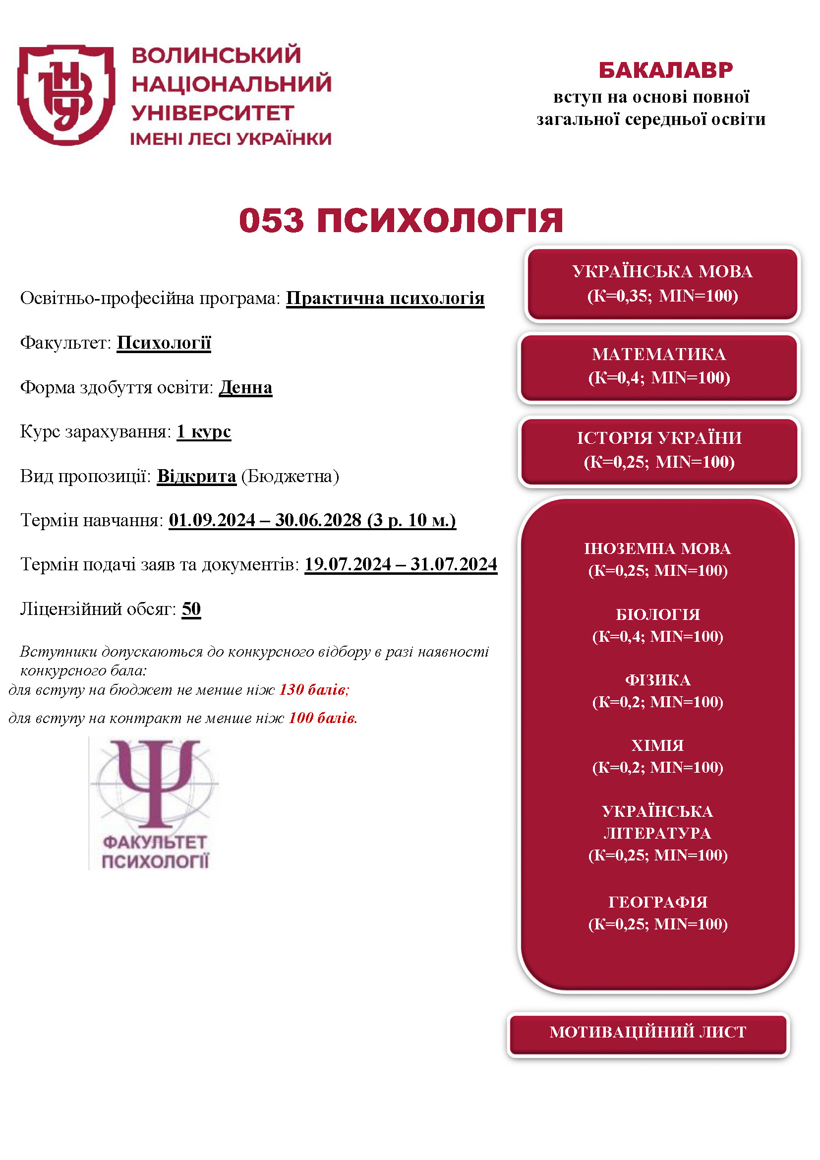 Практична психологія (2024) – Приймальна комісія Волинського національного університету імені Лесі Українки