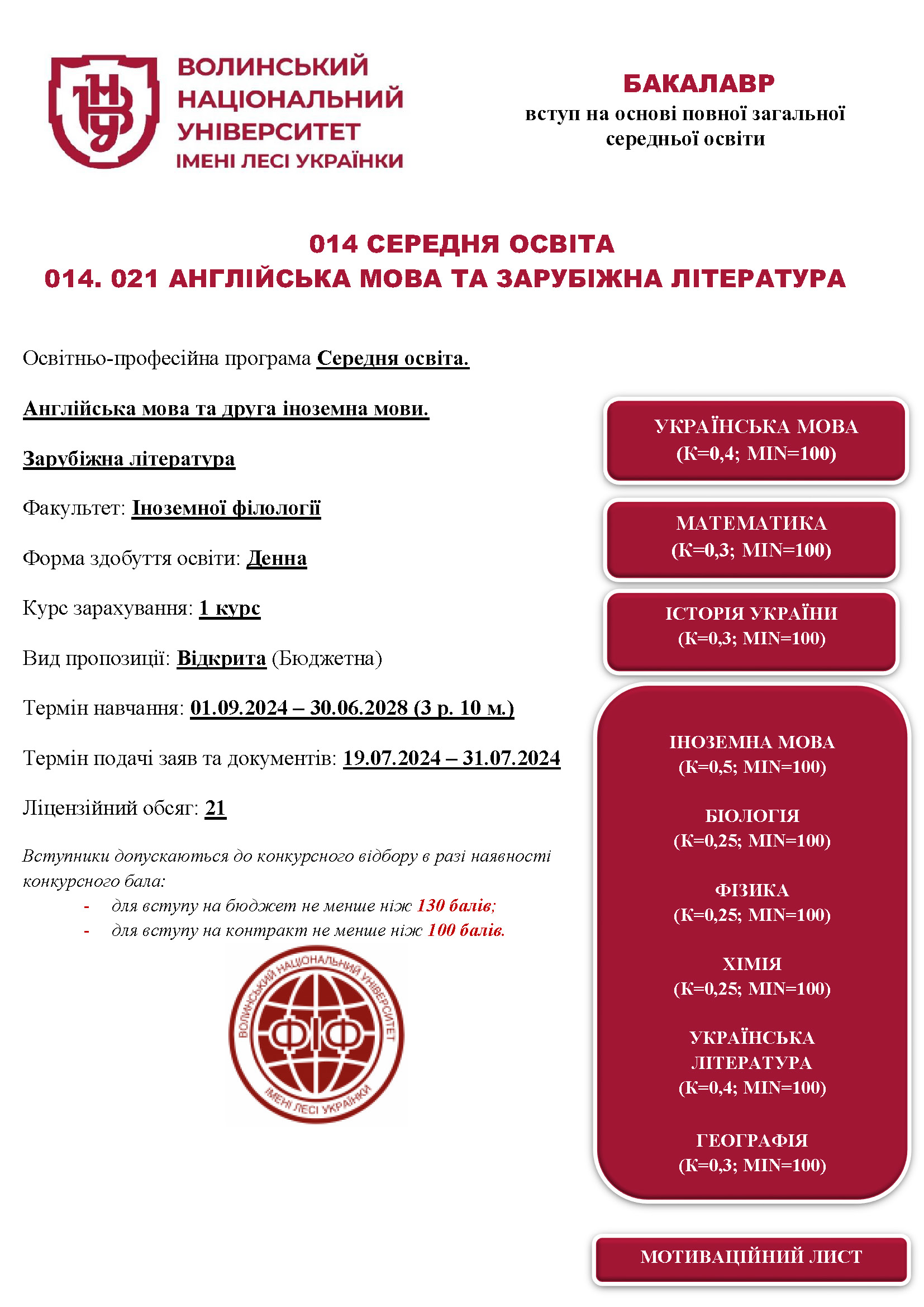 Середня освіта. Англійська мова та друга іноземна мови. Зарубіжна література 2024 (ПЗСО)