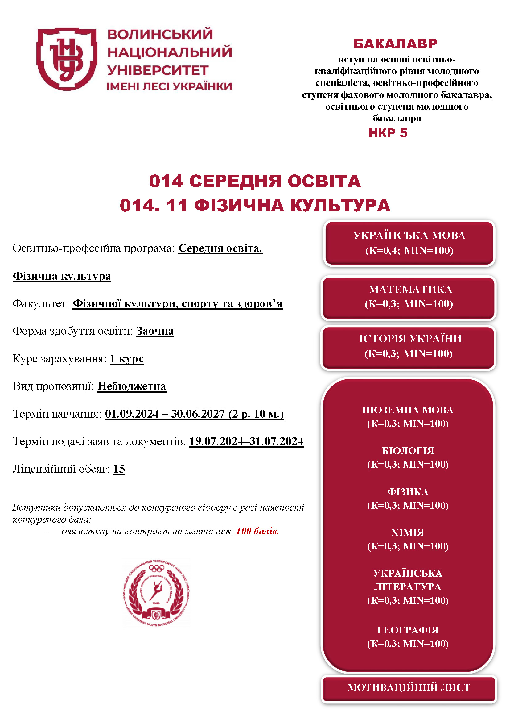 Середня освіта. Фізична культура (НКР 5)