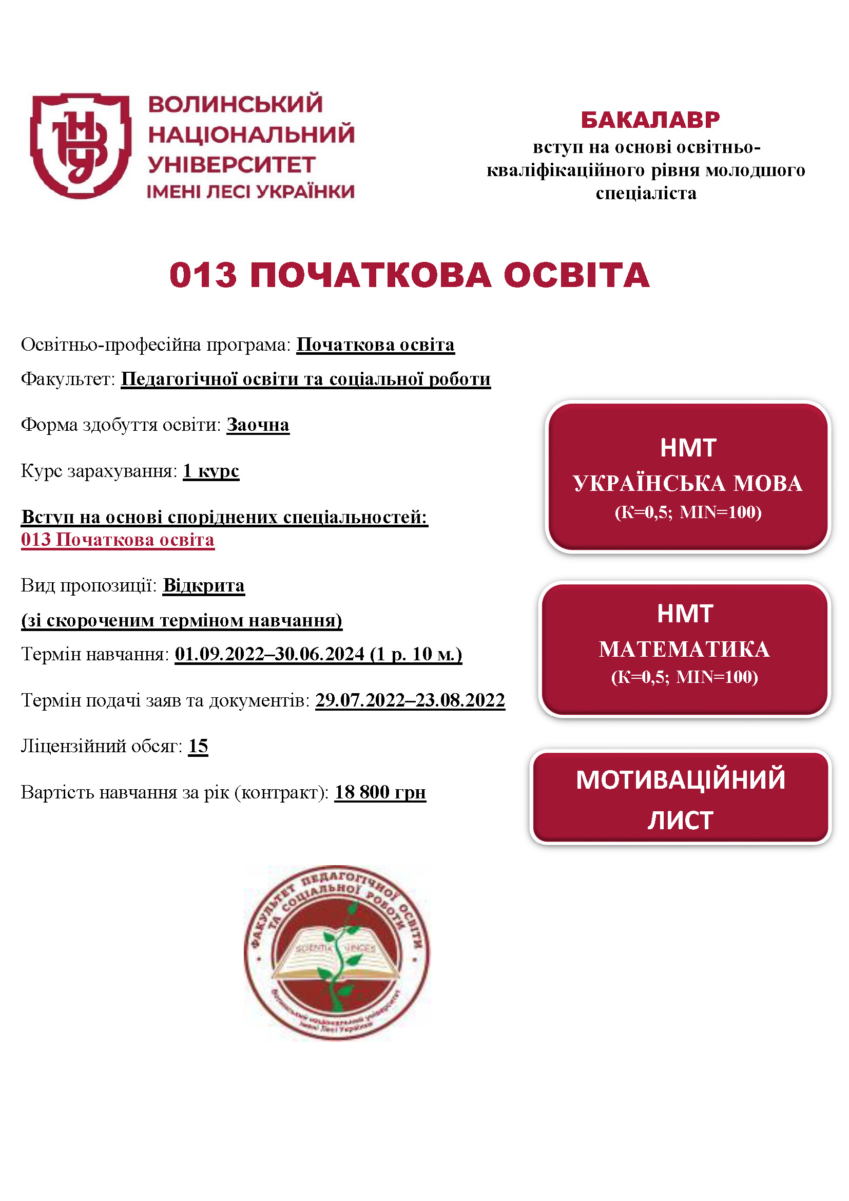 СПЕЦІАЛЬНІСТЬ 013 ПОЧАТКОВА ОСВІТА, освітня програма «Початкова освіта» (МС, заочна форма здобуття освіти)