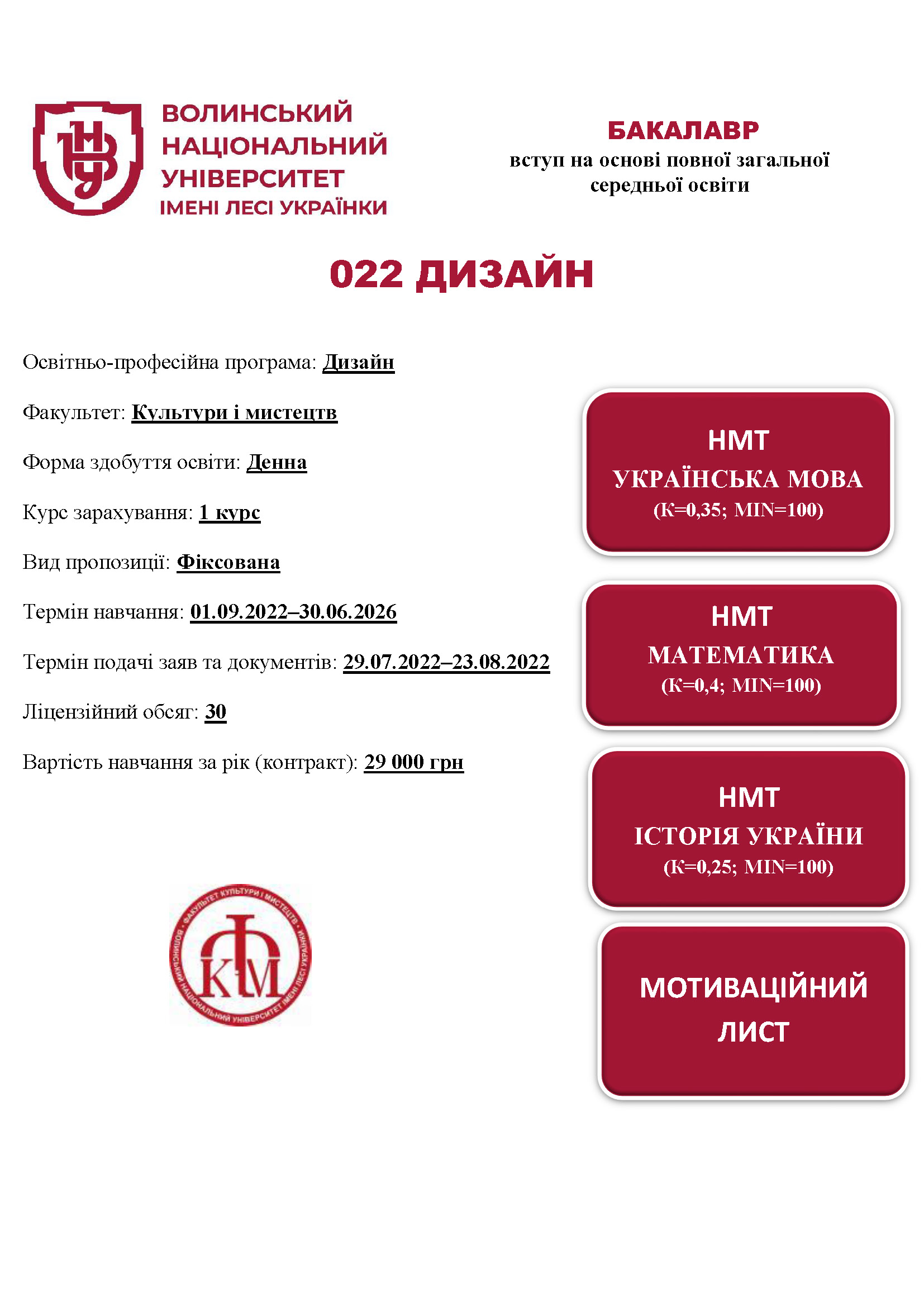СПЕЦІАЛЬНІСТЬ 022 ДИЗАЙН, освітня програма «Дизайн» – Приймальна комісія Волинського національного університету імені Лесі Українки